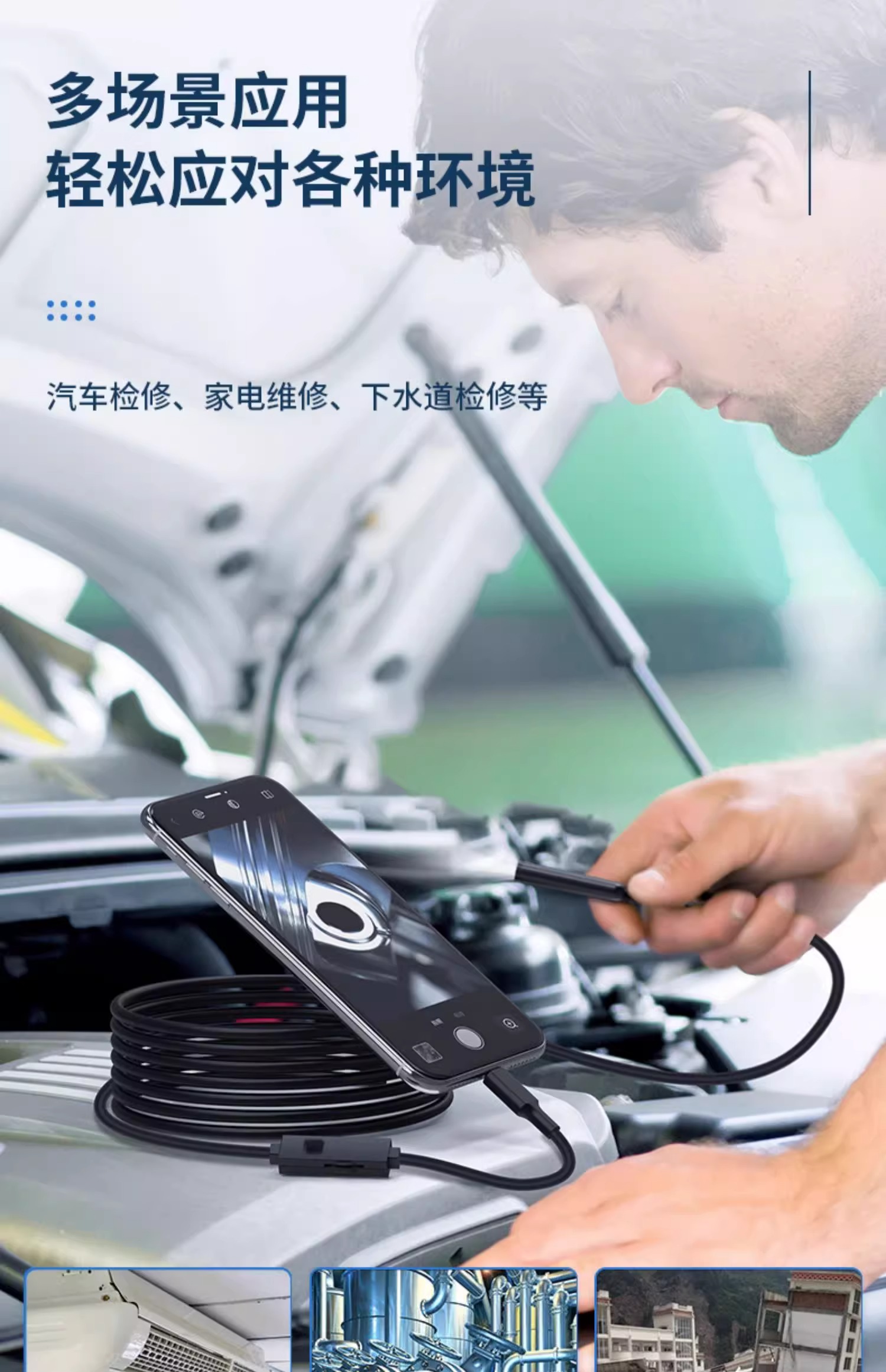 고화질 내시경 카메라 자동차 엔진 수리 산업 파이프 라인 감지 턴식 휴대 전화 프로브 자동 수리스토어 가기