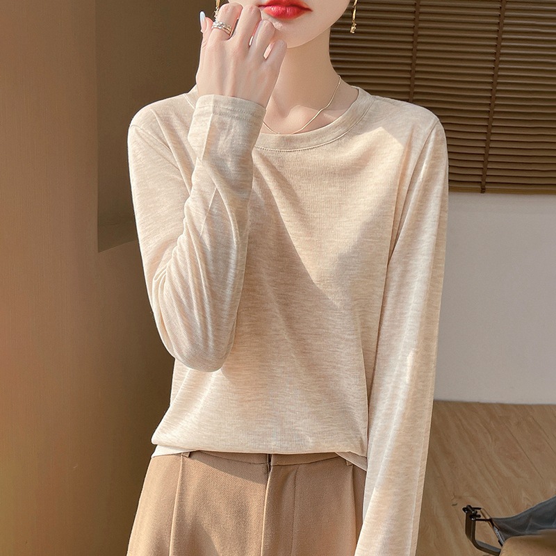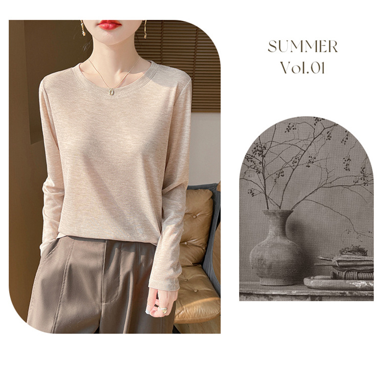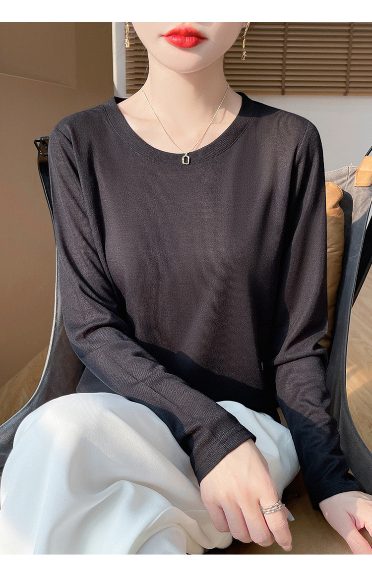 2025 봄과 여름 여성 패션 니트 라운드 넥베이스 셔츠 긴팔 스타일 올 매치 슬리밍 얇은 내부 셔츠