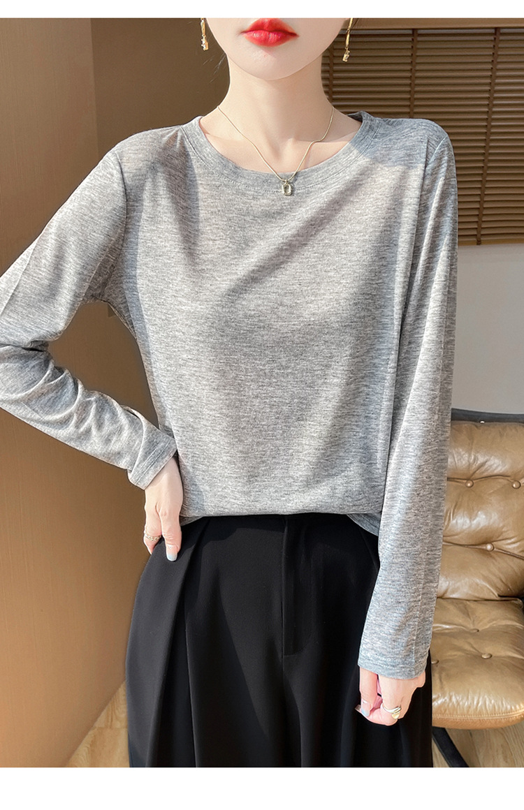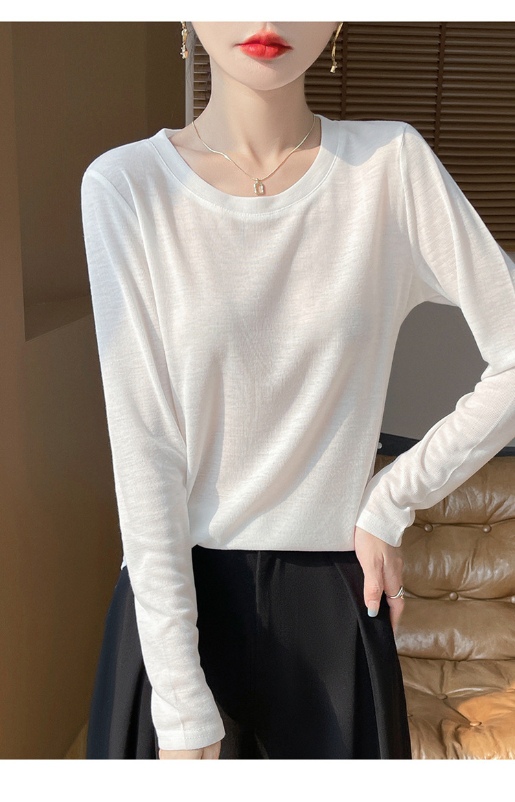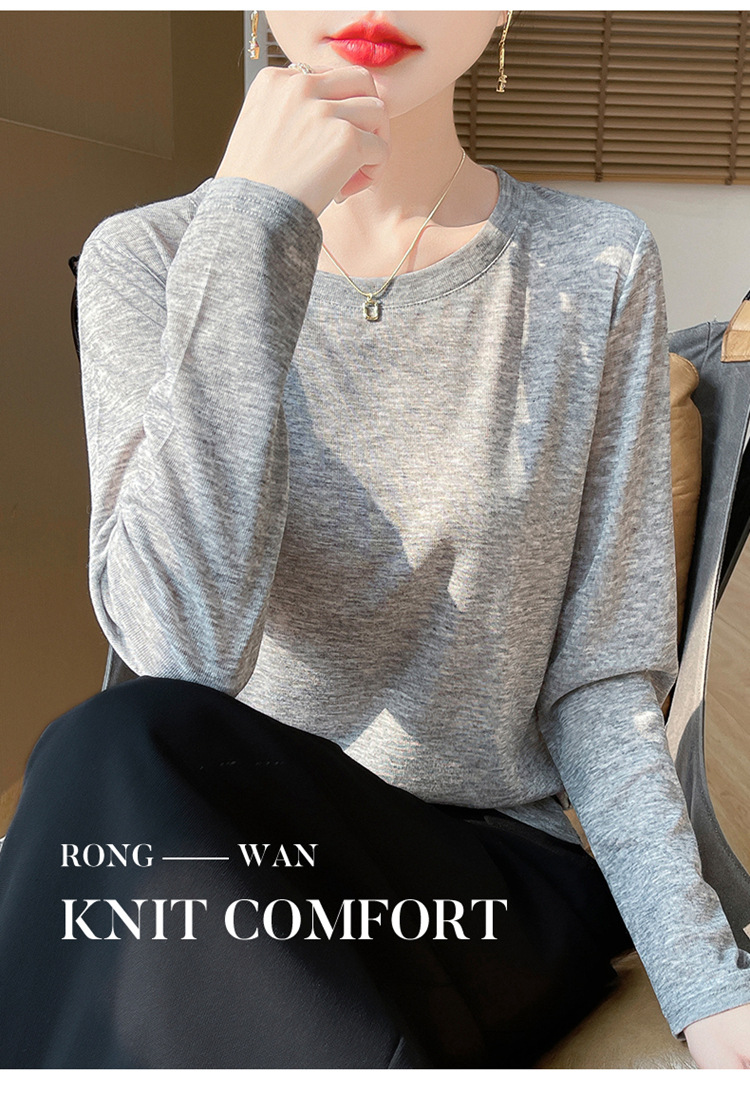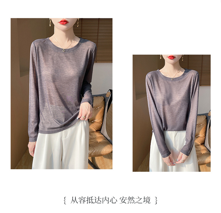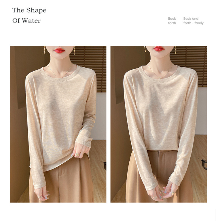 2025 봄과 여름 여성 패션 니트 라운드 넥베이스 셔츠 긴팔 스타일 올 매치 슬리밍 얇은 내부 셔츠스토어 가기