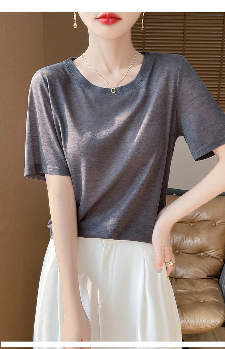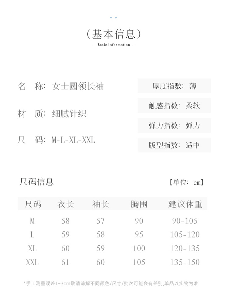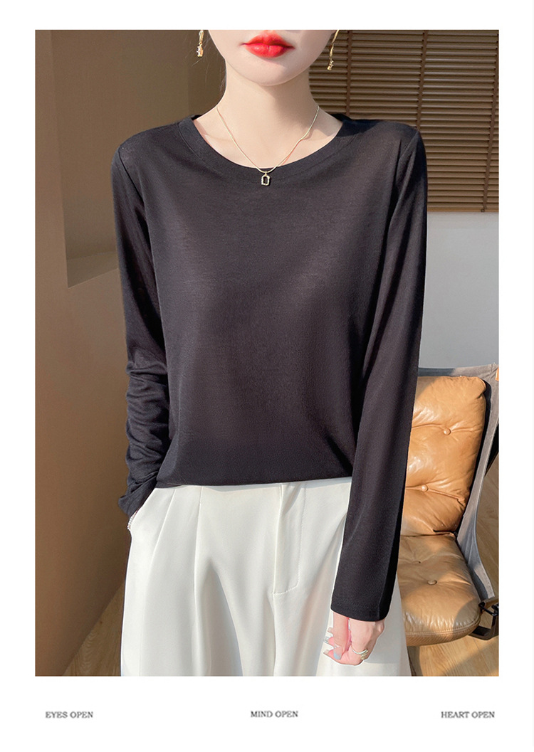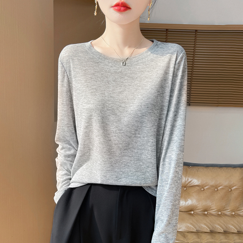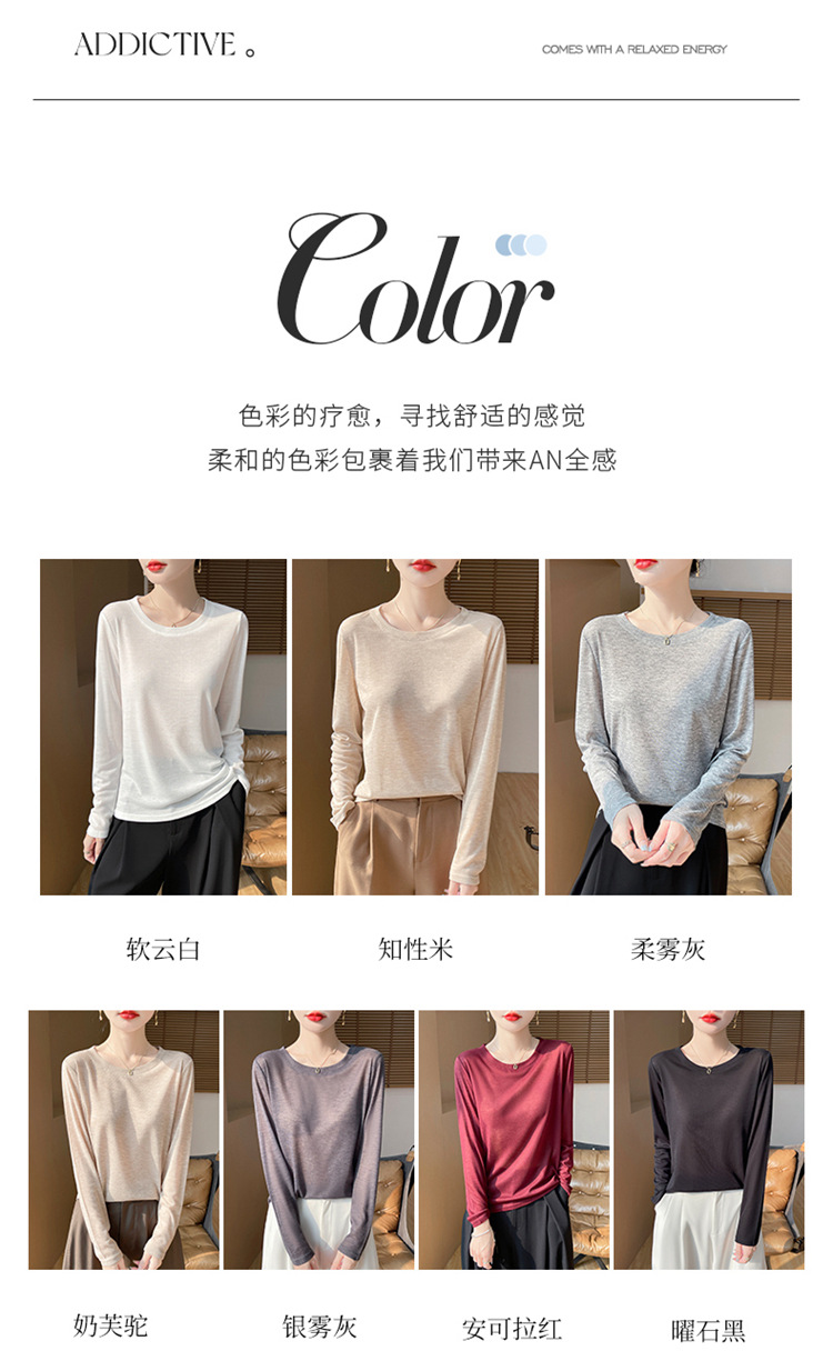 2025 봄과 여름 여성 패션 니트 라운드 넥베이스 셔츠 긴팔 스타일 올 매치 슬리밍 얇은 내부 셔츠스토어 가기