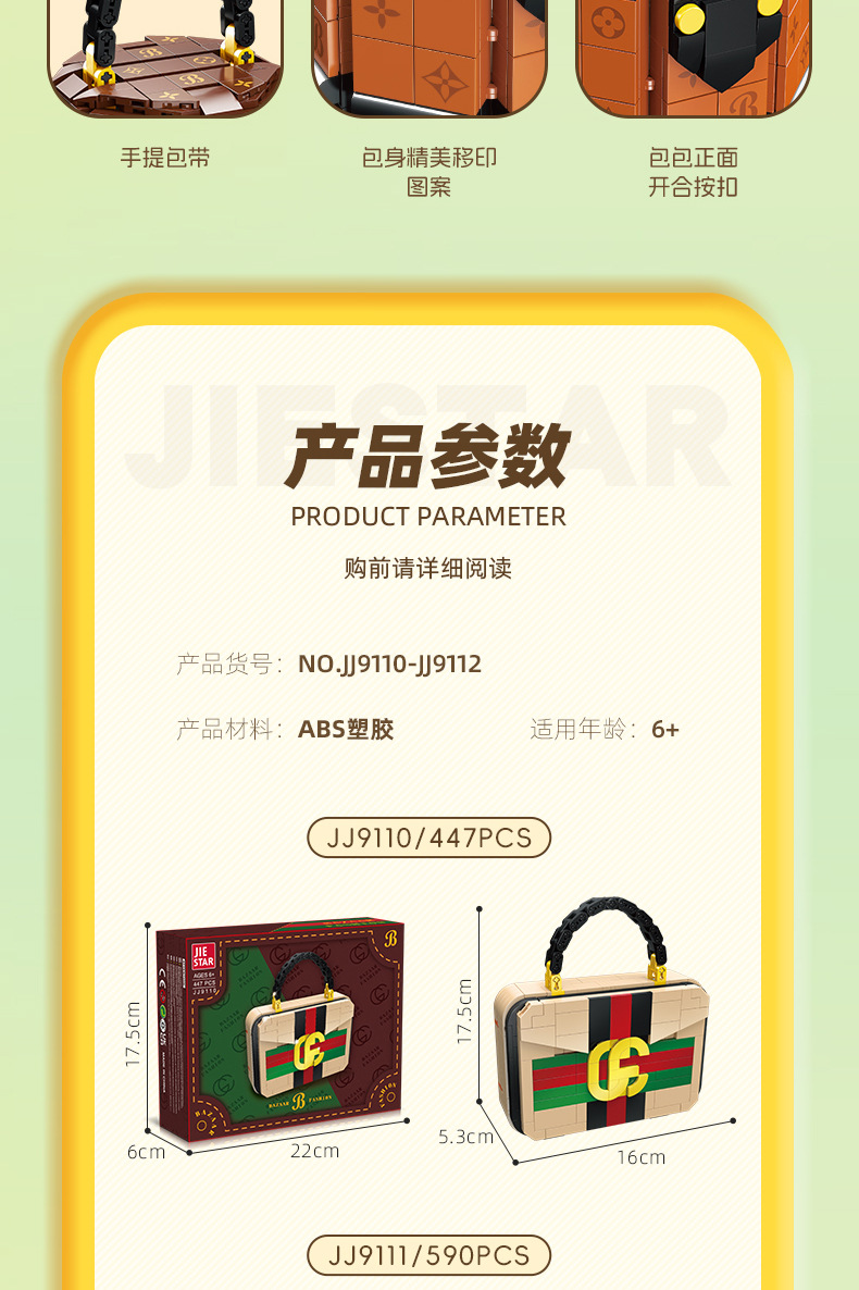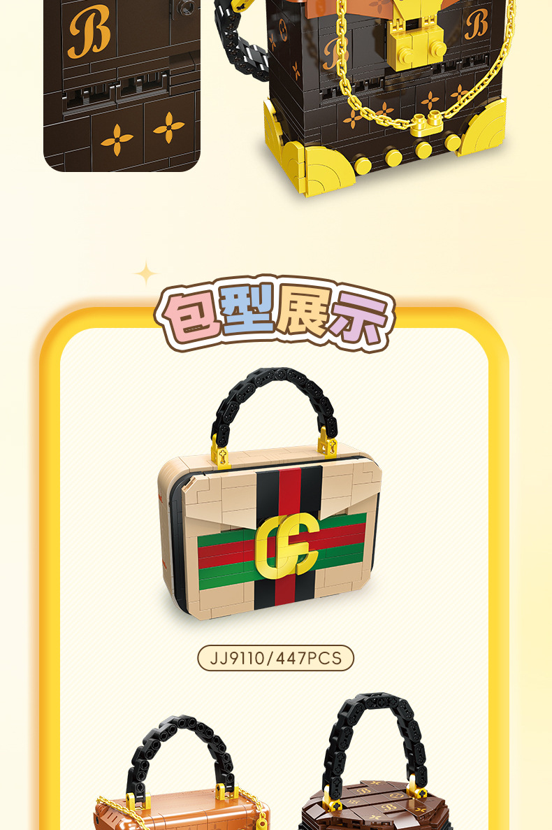 Jiexing JJ9110-9112 패션 가방 모델 조립 된 장식품 소녀 퍼즐 빌딩 블록 장난감 국경 간 선물스토어 가기