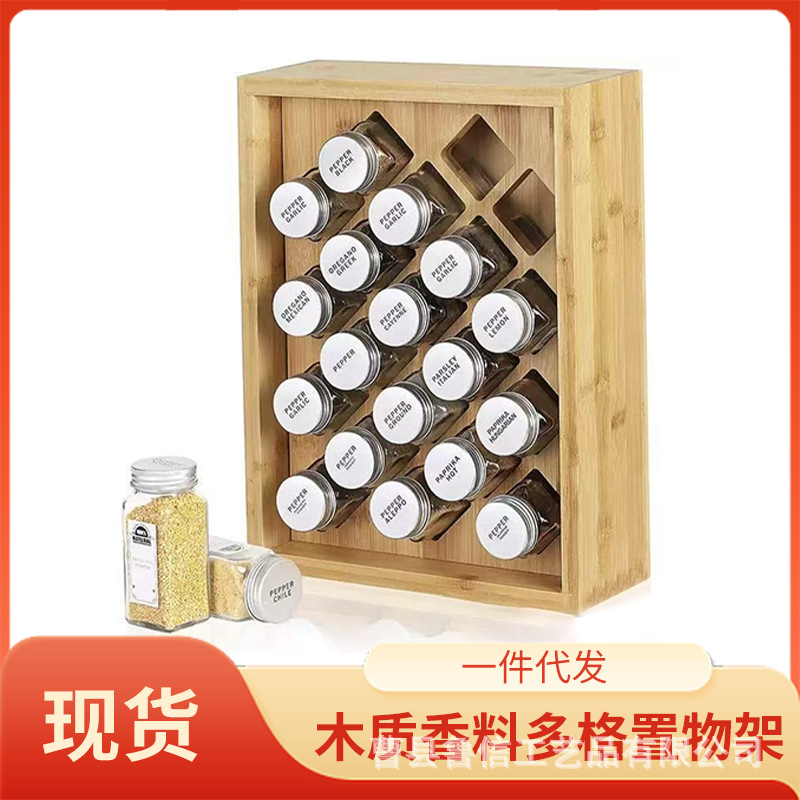 주방 솔리드 우드 스파이스 박스 카운터 탑 스토리지 박스 대나무 및 목재 조미료 병 보관 랙 멀티 그리드 피델리티 랙 수직 스토리지 랙
