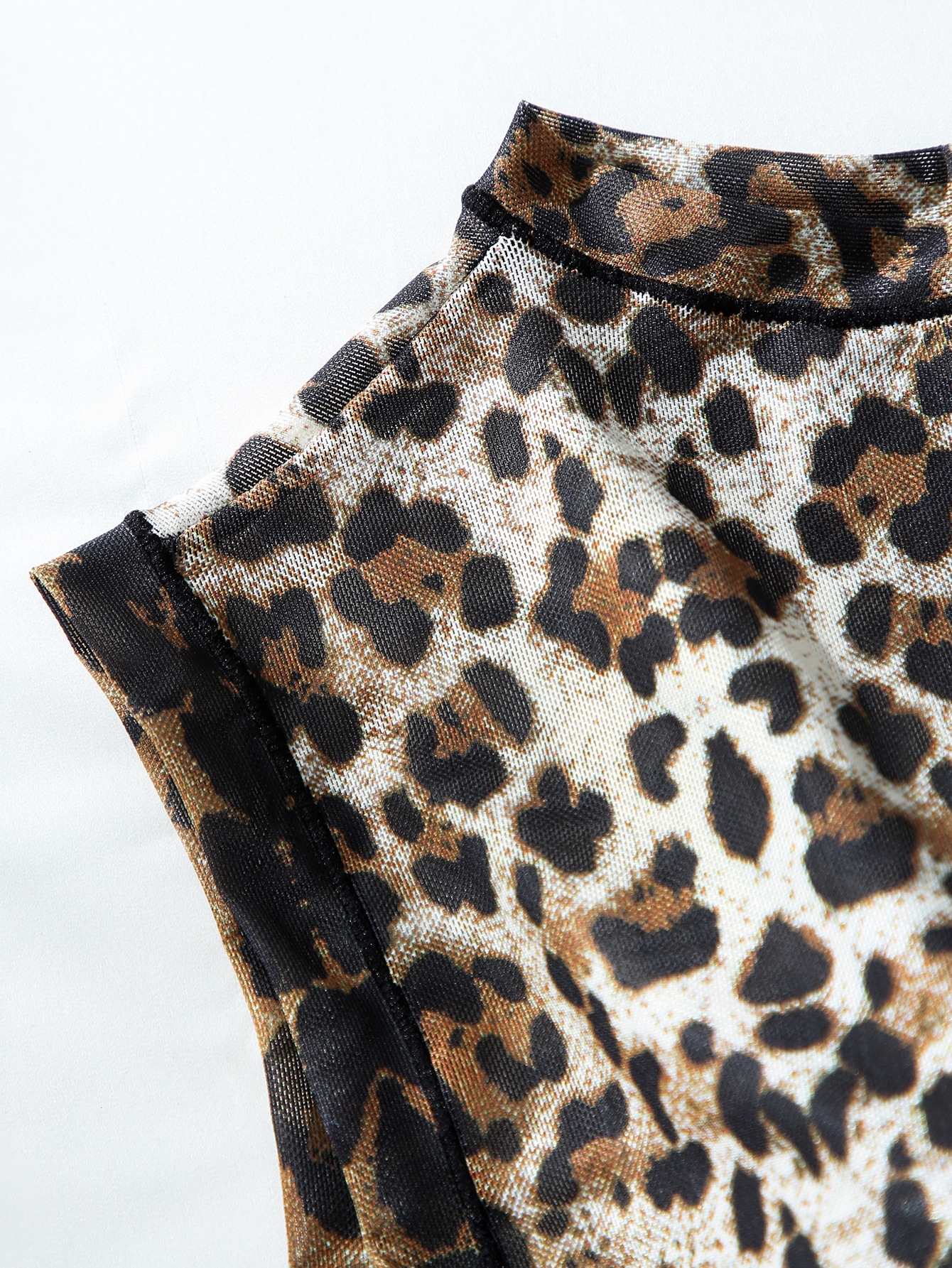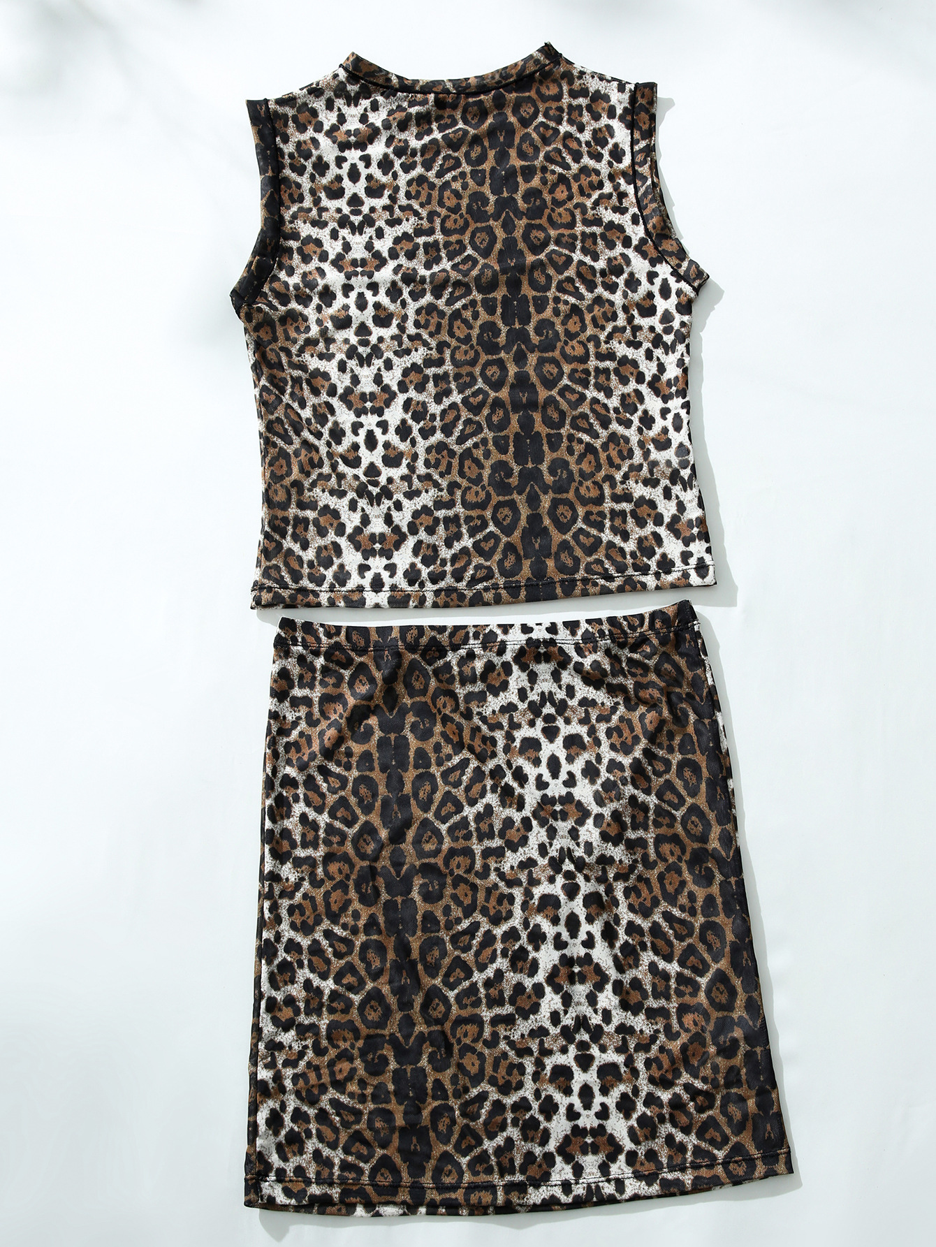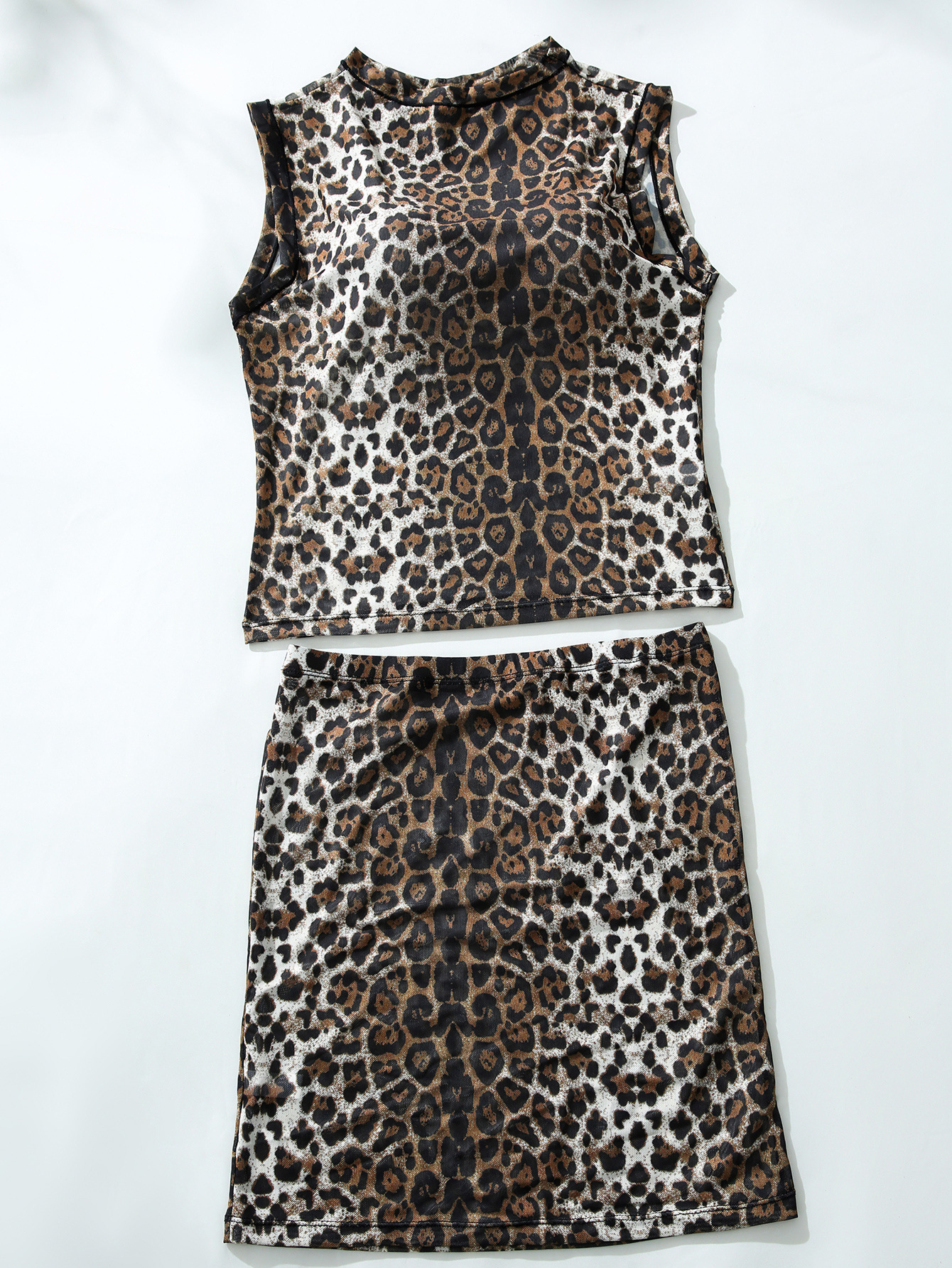 새로운 여름 유럽 및 미국 스타일 레오파드 프린트 섹시 핫걸 세트, 여성 패션 캐주얼 힙허깅 숏 스커트와 민소매 탑
