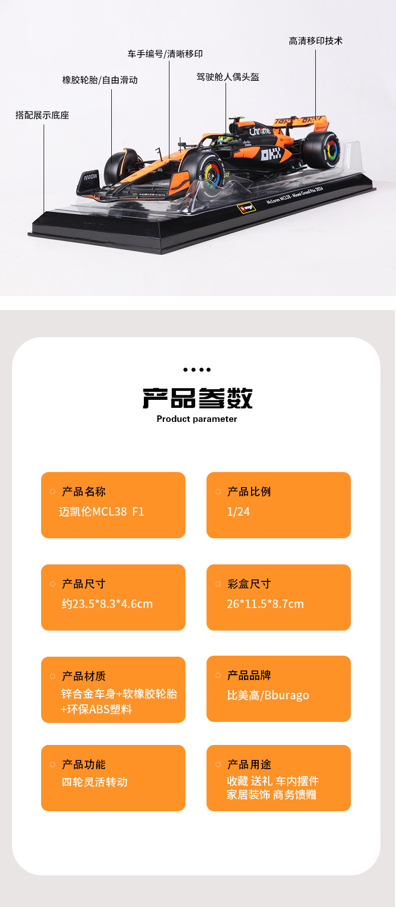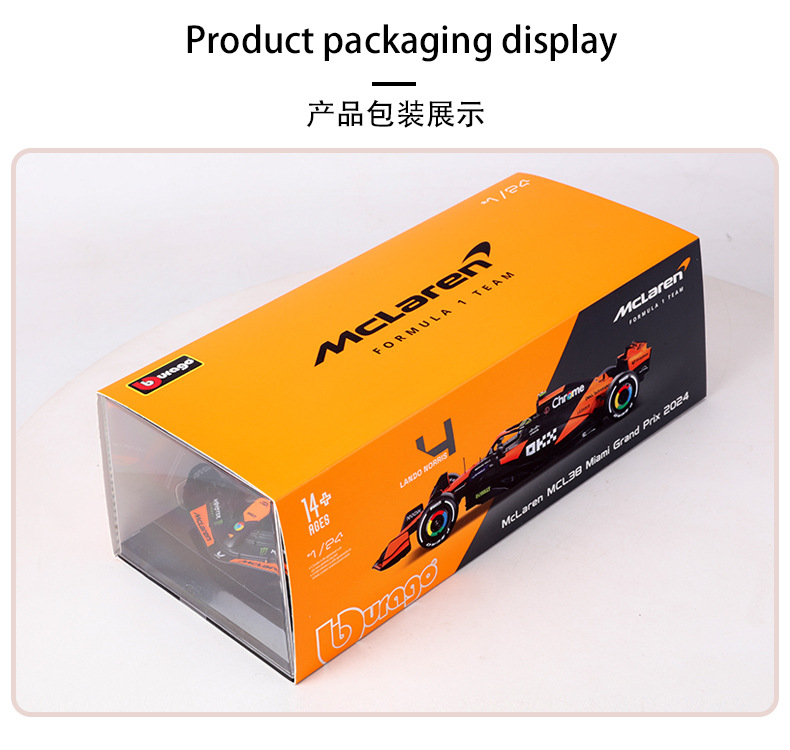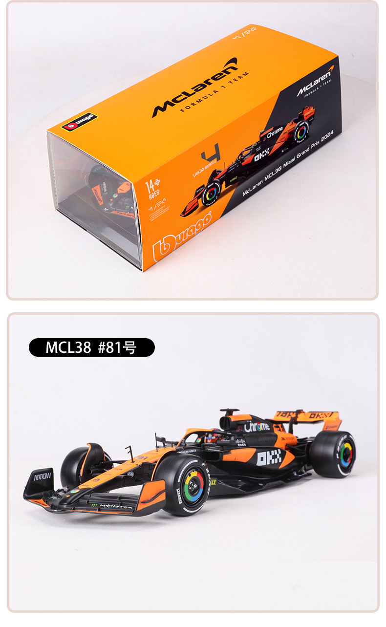 Bimeo 2024 마이애미 포뮬러 1:24 McLaren MCL38 F1 모델 합금 자동차 장식품스토어 가기