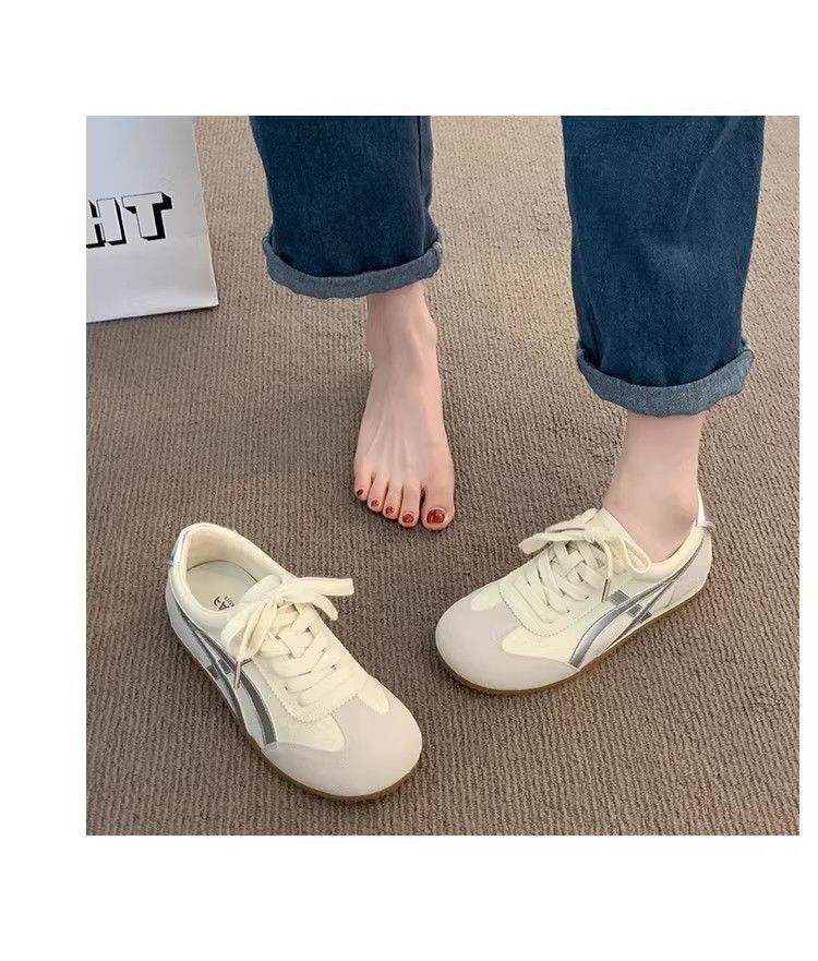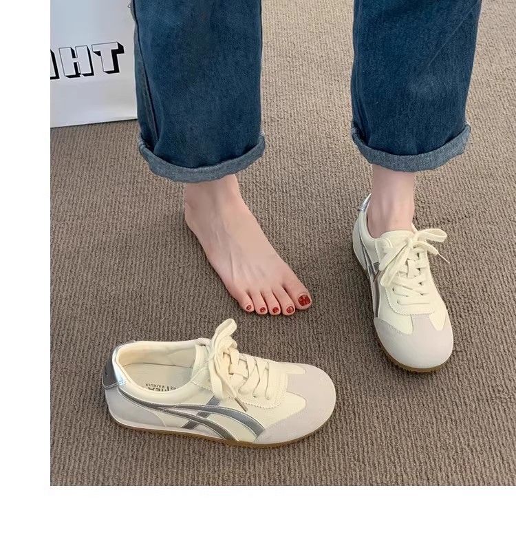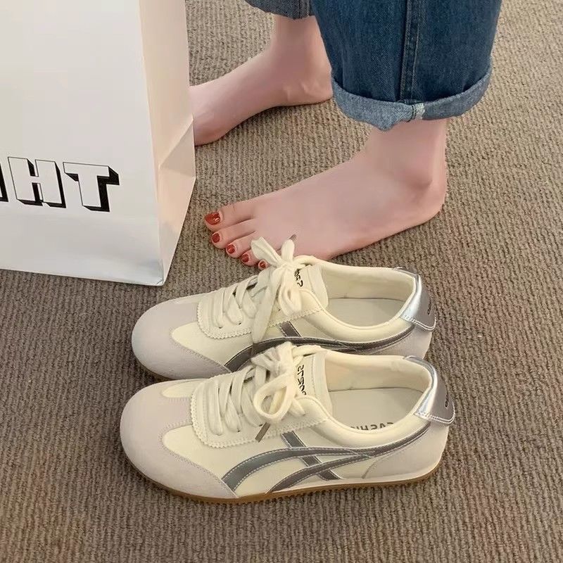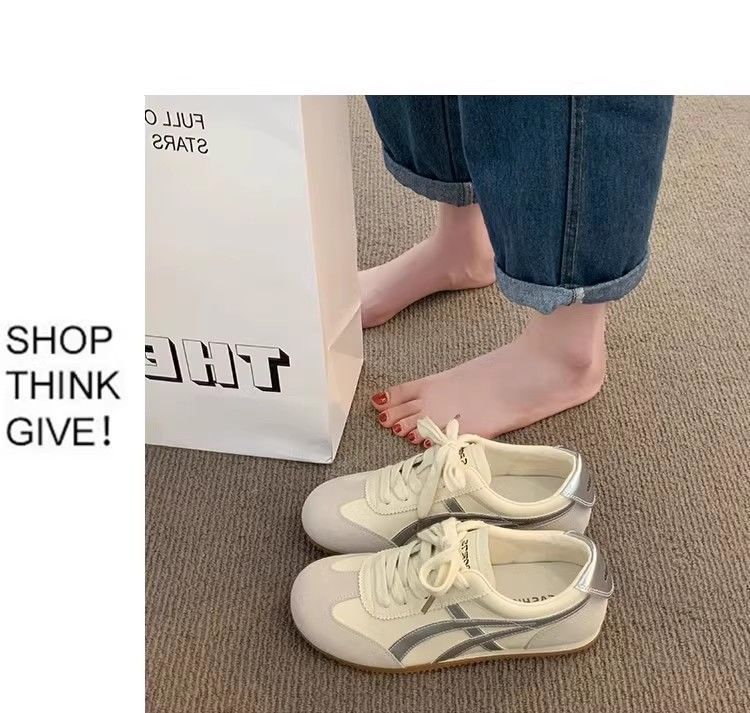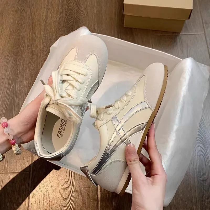 데쉰 여성용 화이트 슈즈 2025 봄 가을 신상 인기 평평한 밑창 다용도 스포츠 캐주얼 얕은 입구 가죽 패널 슈즈스토어 가기
