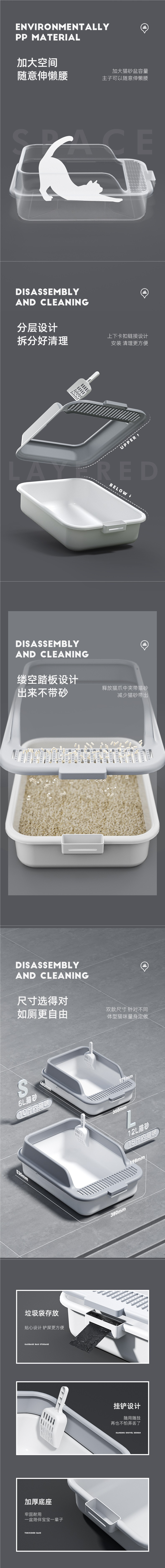 • 초대형 개방형 고양이 배변 상자 [고양이 배변 국자 포함]