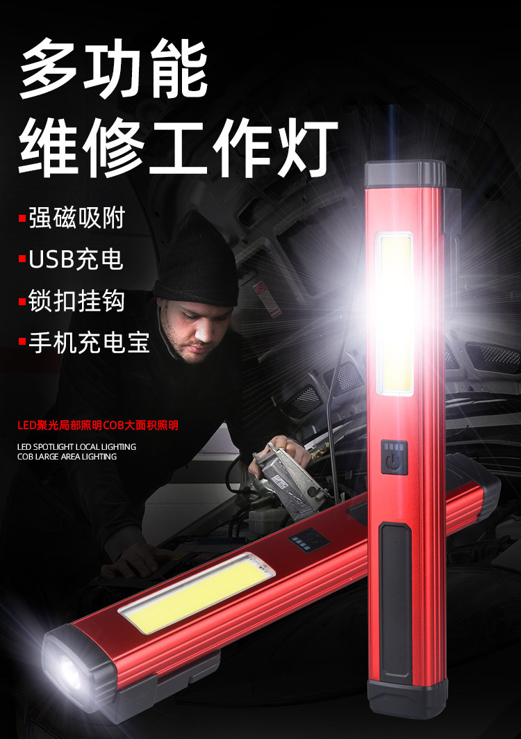 크로스-국경 새로운 COB 작업 빛 충전식 자동 수리 조명 펜 클립 유지 보수 조명 자석 채우기 조명