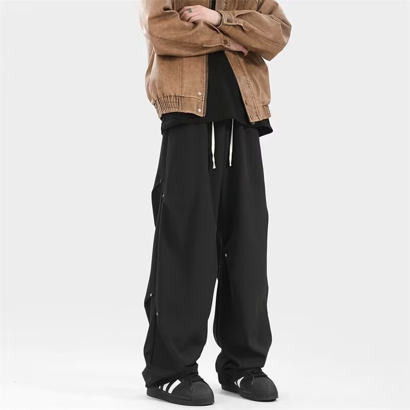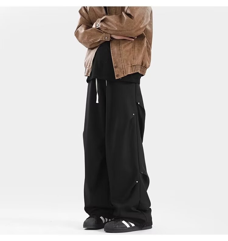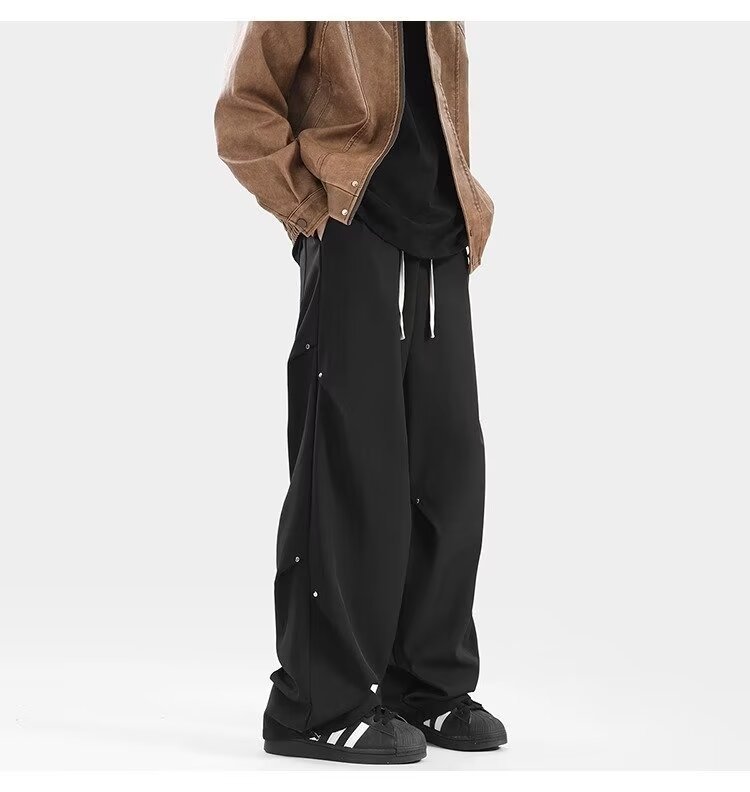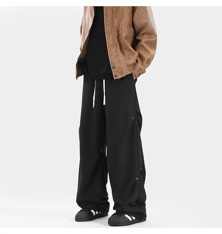야외 새로운 도착 소박한 바지 남성용 방풍 방수 기능성 코일 바지 유행 브랜드 스포츠 캐주얼 바지 블랙