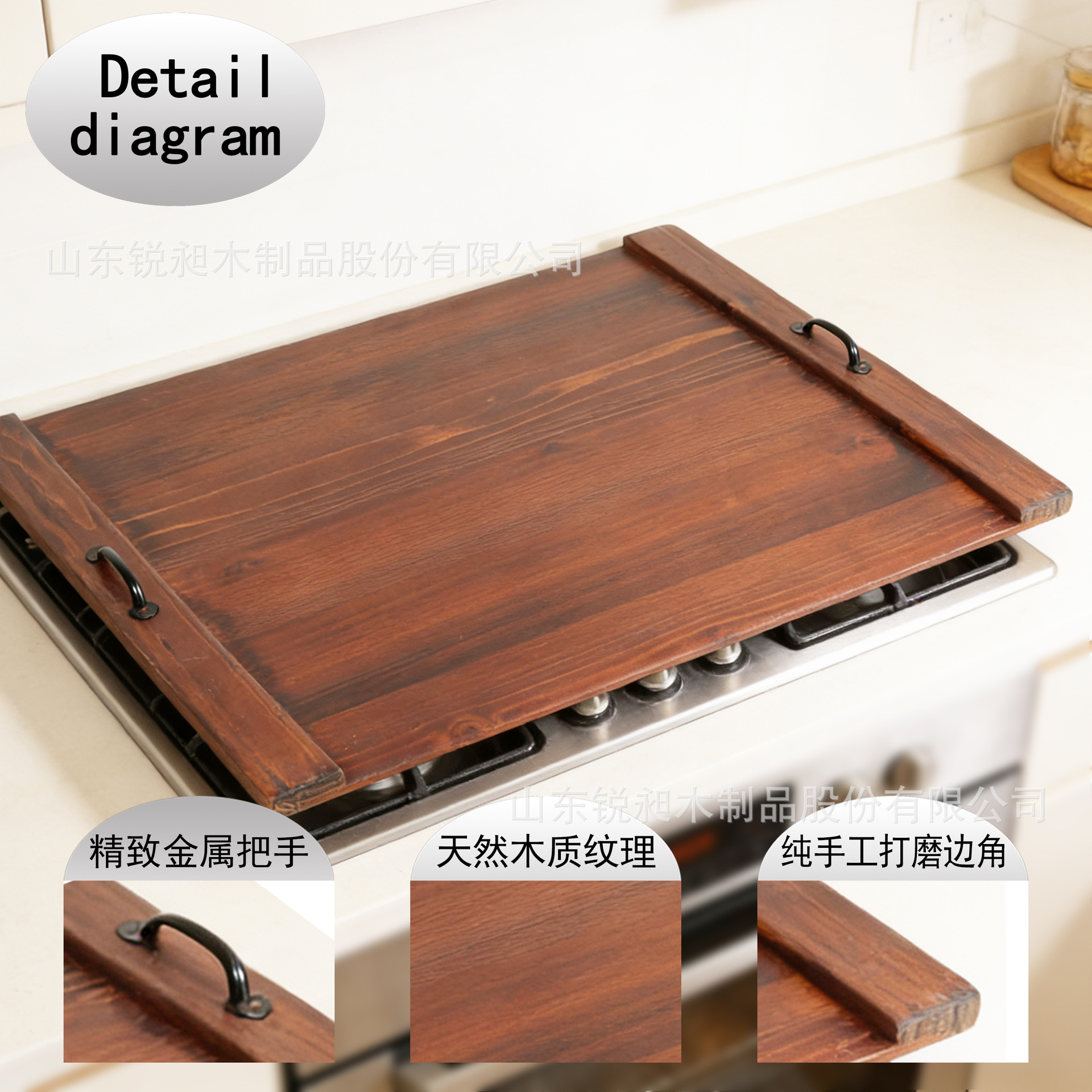 공장 단단한 나무 가스 스토브 커버 가정용 주방 직사각형 스토브 나무 트레이 스토브 커버 휴대용 디너 플레이트