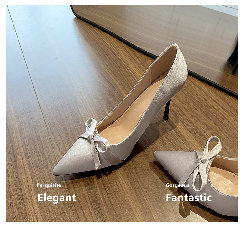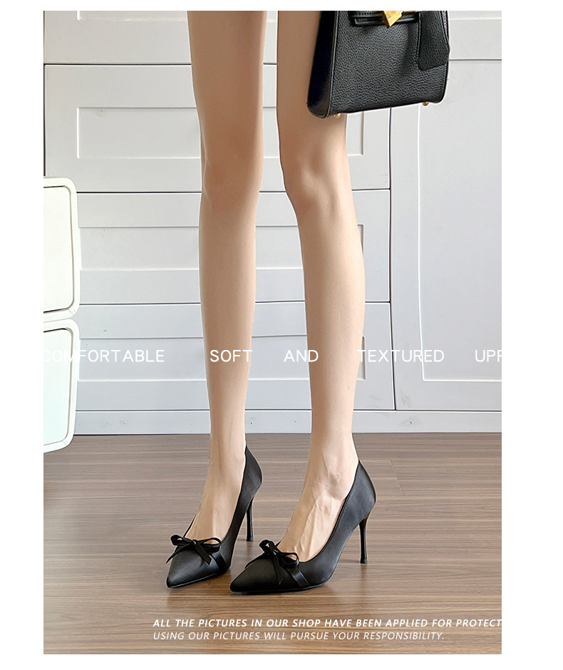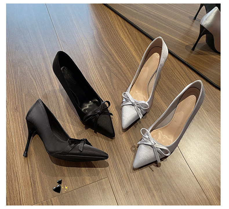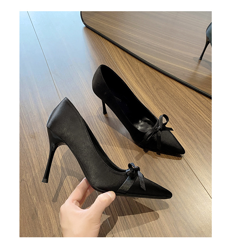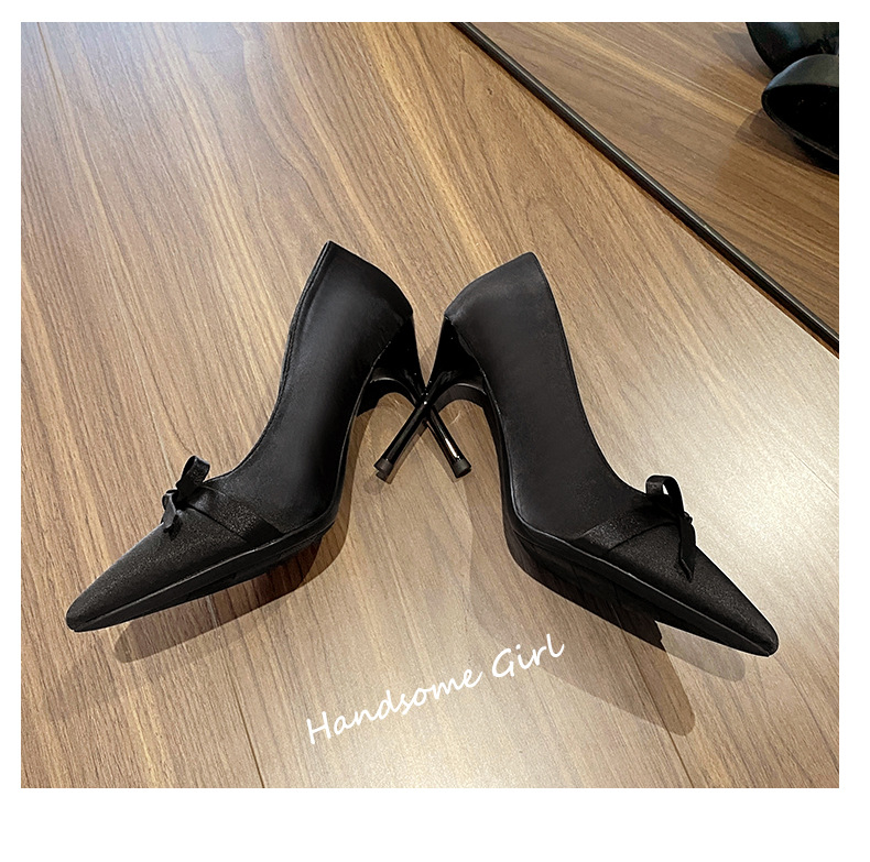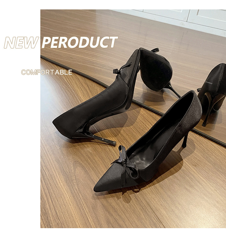 검은 실크 스타킹 하이힐 여성 2025 새로운 도착 아름다운 뾰족한 섹시한 나비 스틸레토 힐 신발스토어 가기