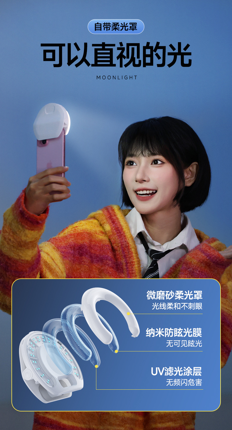 D7 클립 C 포켓 채우기 라이트 그물 레드 미니 사진 조명 하이라이트 LED 분위기 빛 셀카 라이브 뷰티 라이트스토어 가기