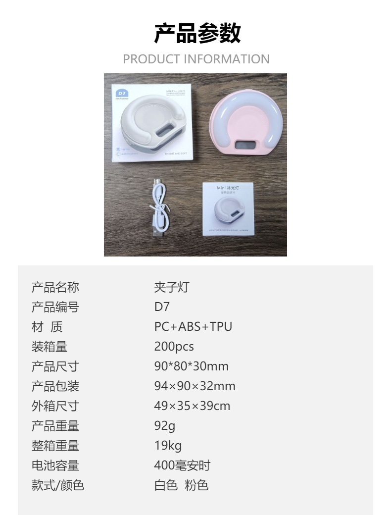 D7 클립 C 포켓 채우기 라이트 그물 레드 미니 사진 조명 하이라이트 LED 분위기 빛 셀카 라이브 뷰티 라이트