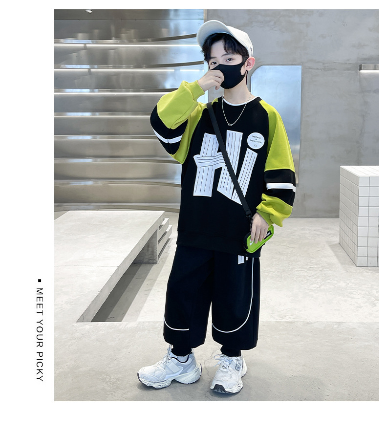 남아 봄 의류 세트 2026 신상 중대형 아동용 남아 스웨트셔츠 운동복 봄 가을 투피스 세트 패셔너블하고 트렌디하다스토어 가기