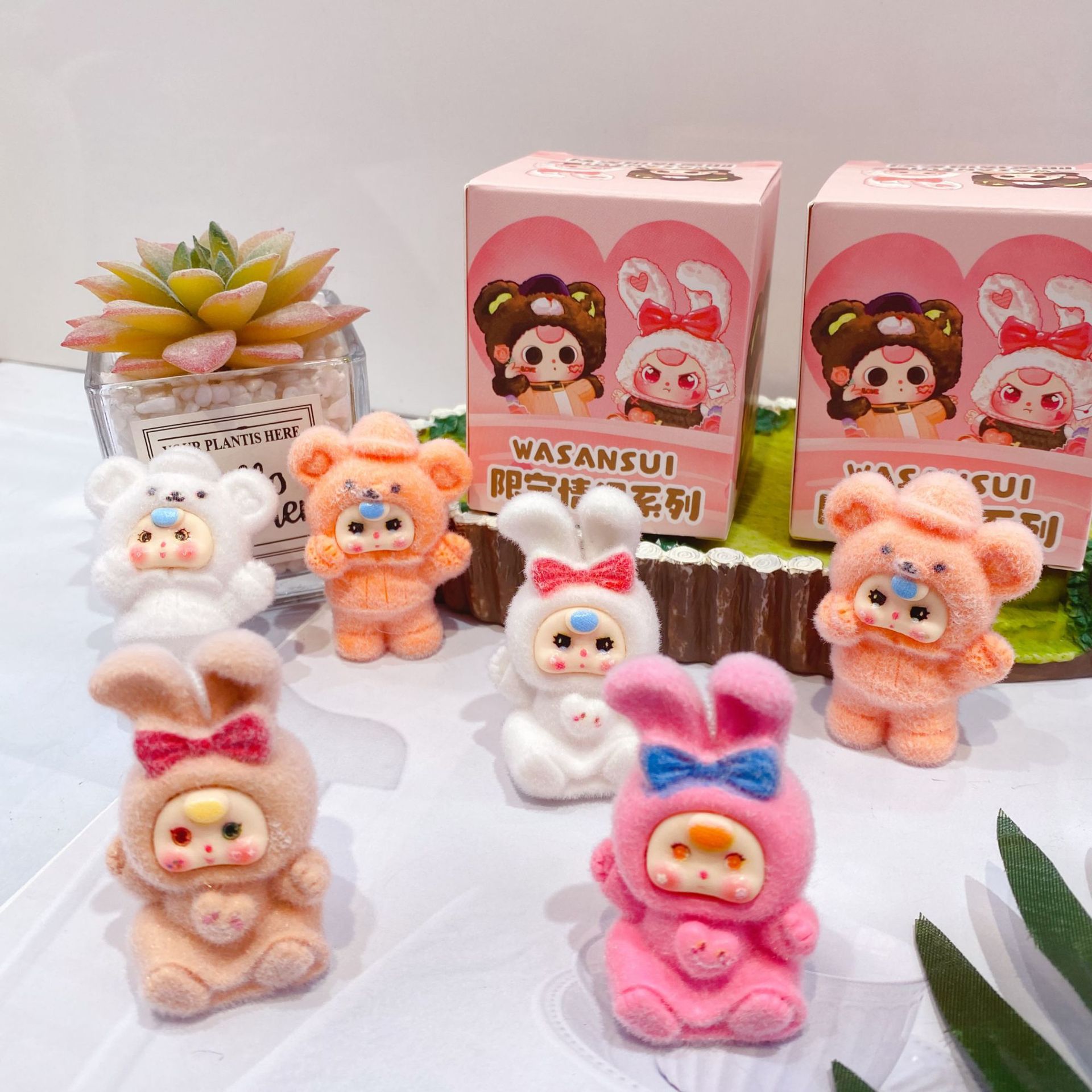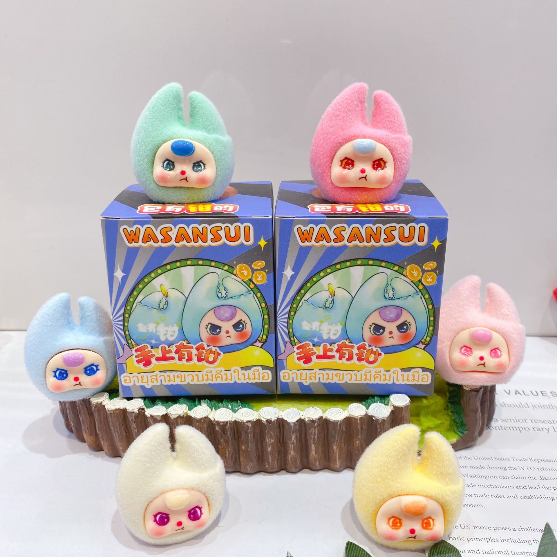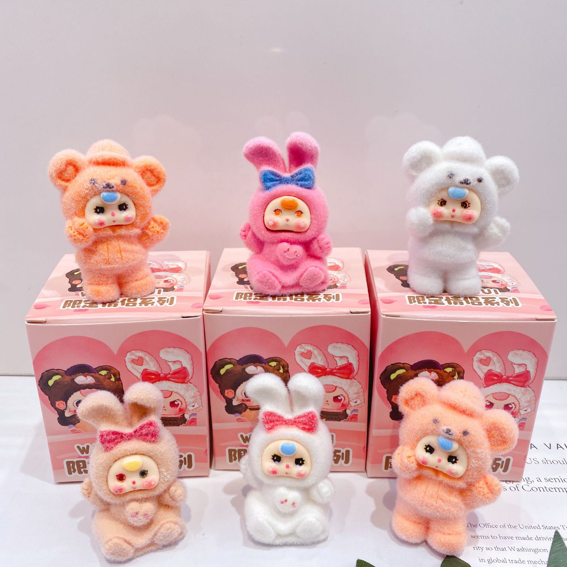 새로운 만화 플록 핸드 피규어 블라인드 박스, 귀여운 미니 인형, 데스크탑 장식품, 트렌디한 장난감 모델 선물