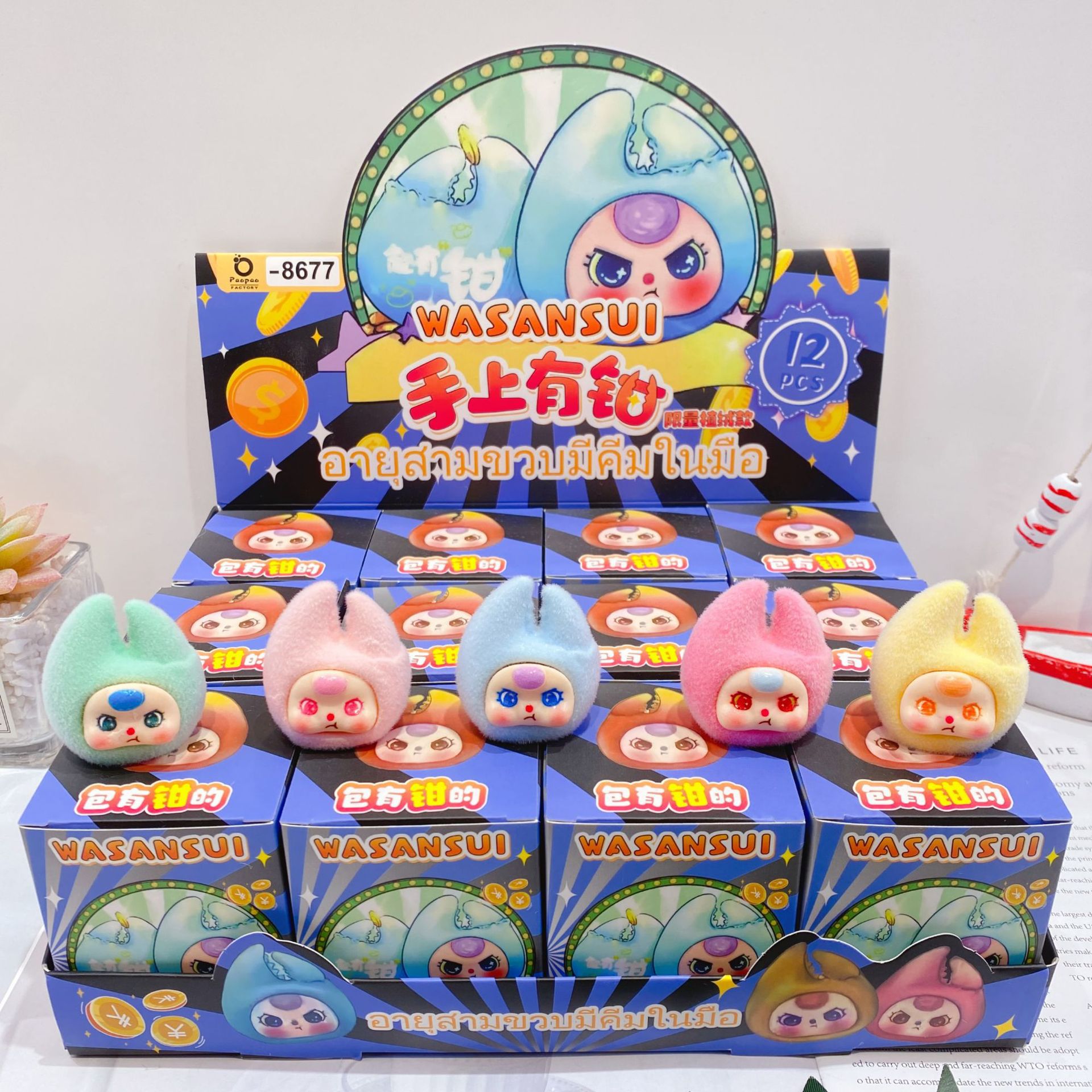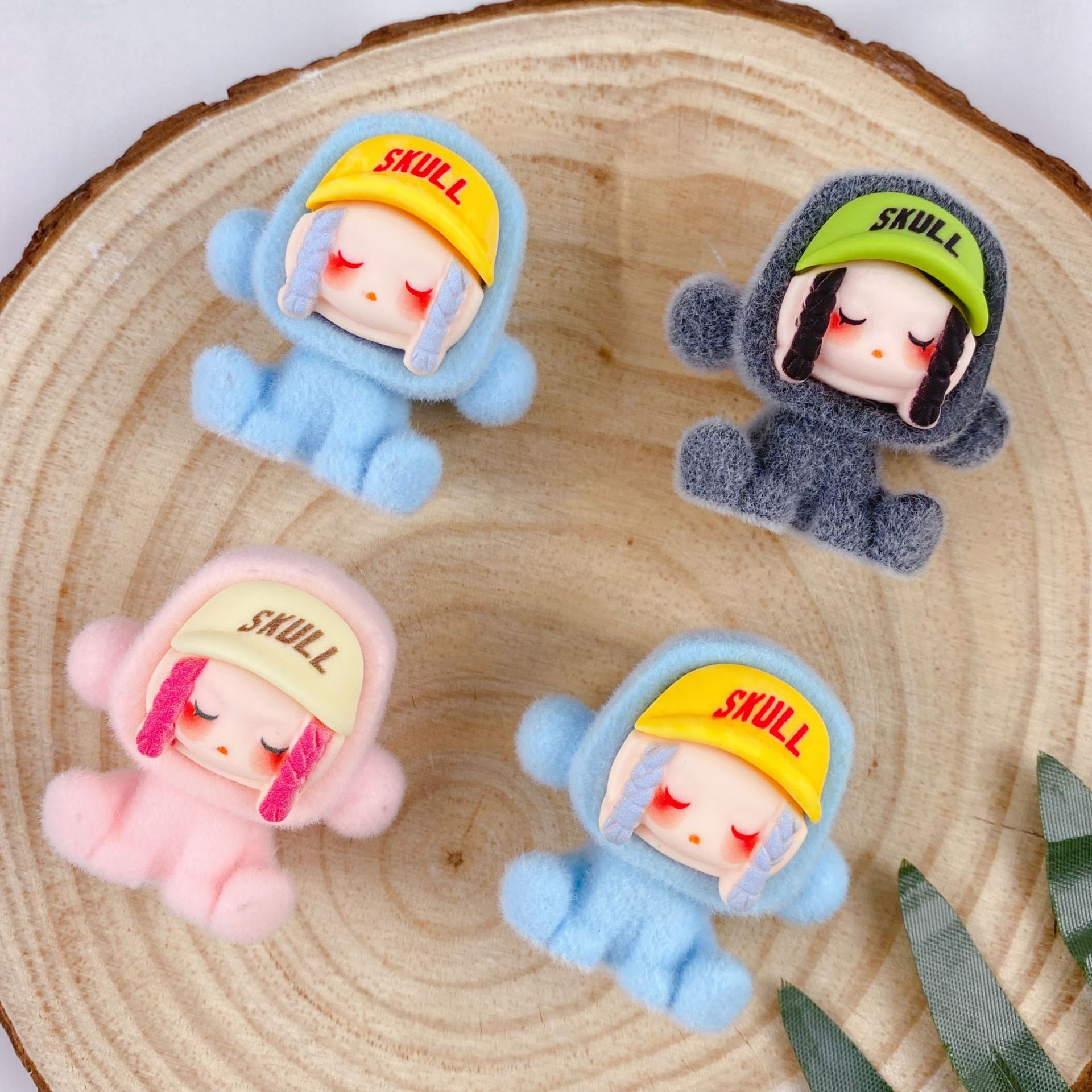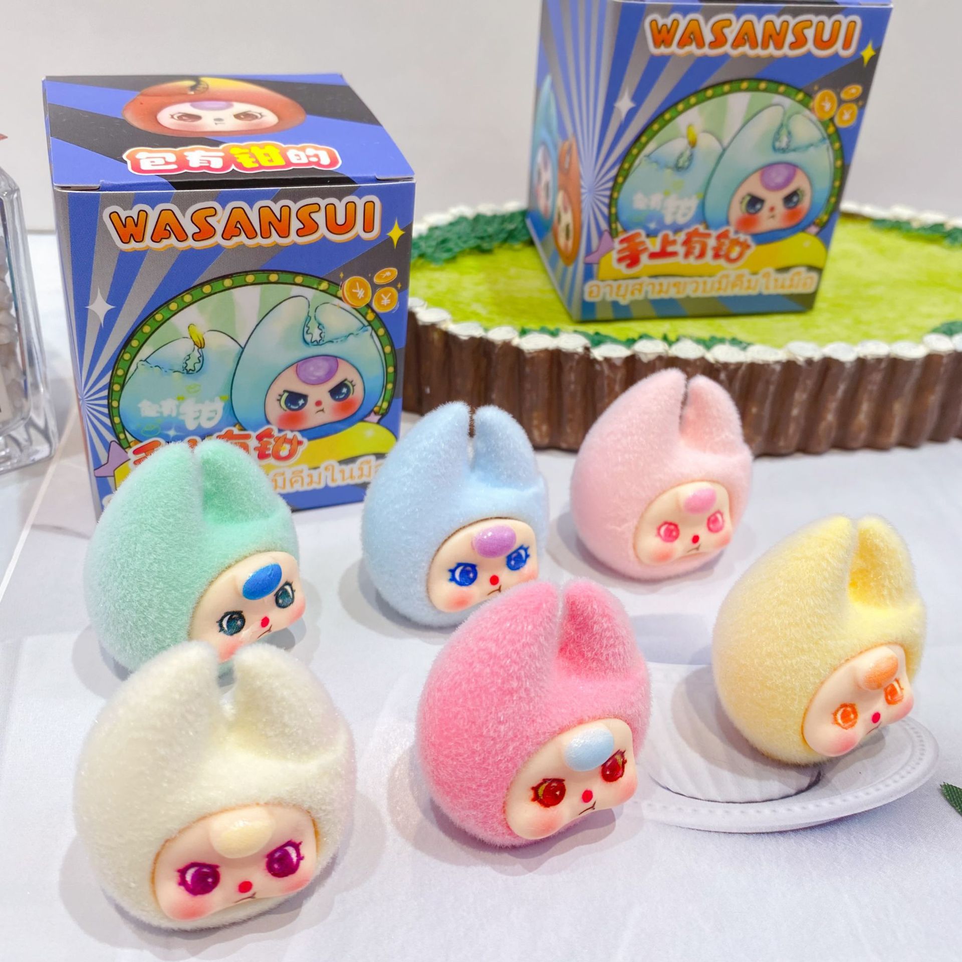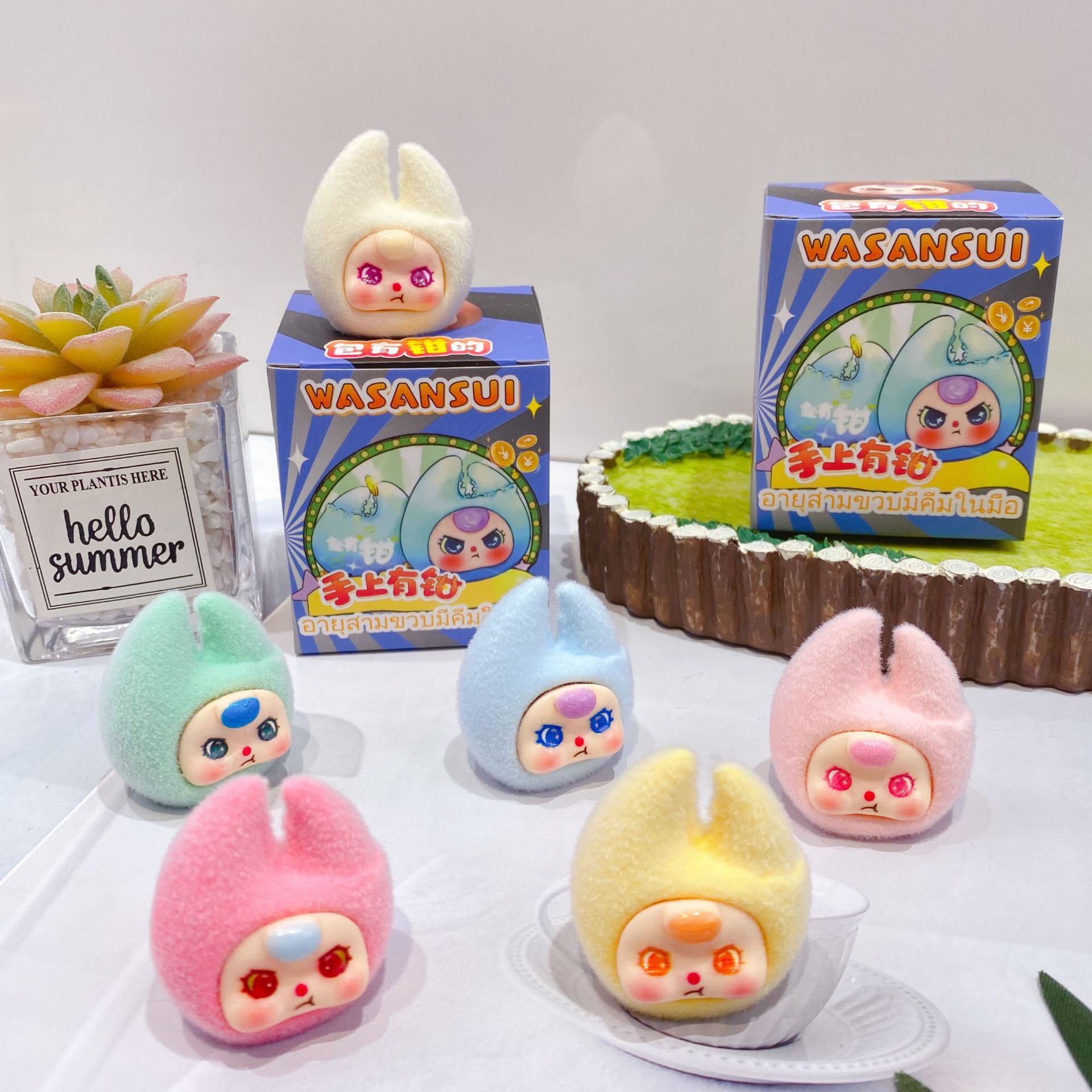 새로운 만화 플록 핸드 피규어 블라인드 박스, 귀여운 미니 인형, 데스크탑 장식품, 트렌디한 장난감 모델 선물
