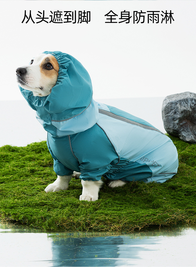 새로운 봄과 여름 대조 컬러 올 인 클루 인 코기 충전 비옷 비옷 비오는 날 네 다리 애완 동물 중형 개 비옷