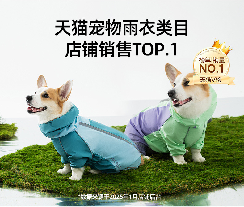 새로운 봄과 여름 대조 컬러 올 인 클루 인 코기 충전 비옷 비옷 비오는 날 네 다리 애완 동물 중형 개 비옷스토어 가기