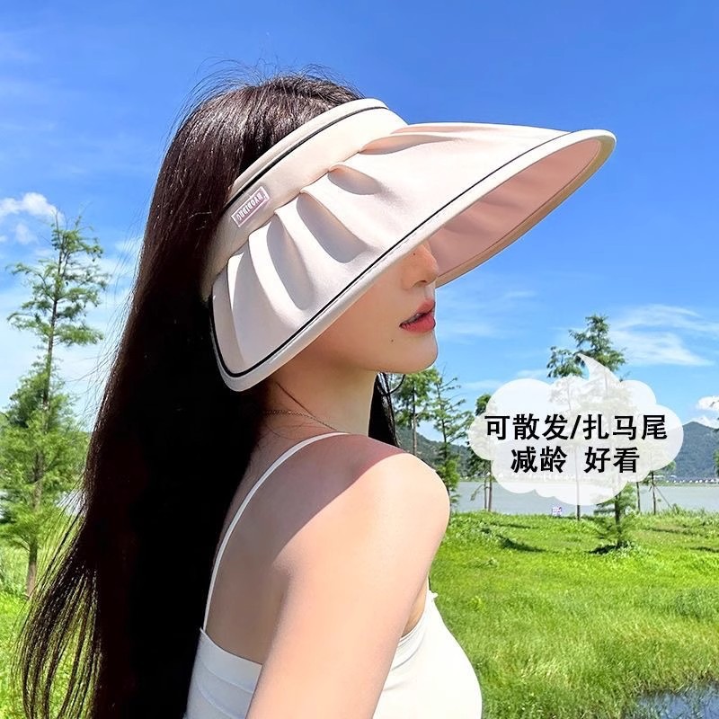 여성용 아이스 실크 자외선 차단 모자, 여름용 UV 차단 2026년 신상 햇빛 가리개 모자, UV 야외 라이딩용 빈탑 챙넓은 태양 모자