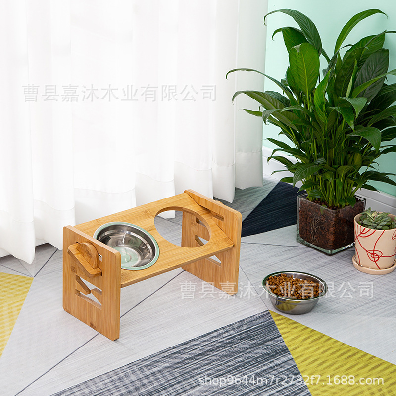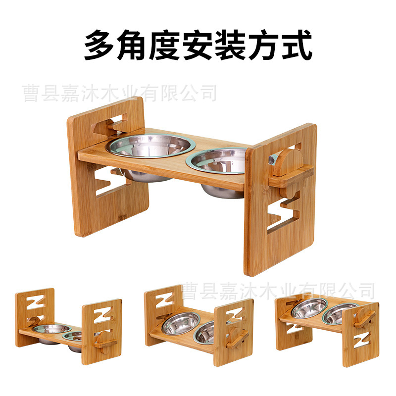 나무 애완 동물 그릇 랙 더블 볼 애완 동물 먹이 그릇 랙 스테인레스 스틸 그릇 식품 나무 랙 고양이 그릇 랙 피더스토어 가기