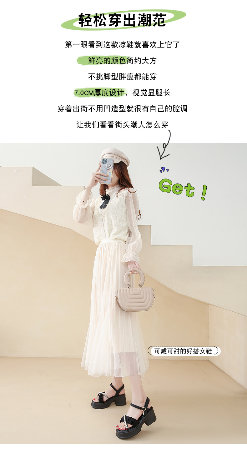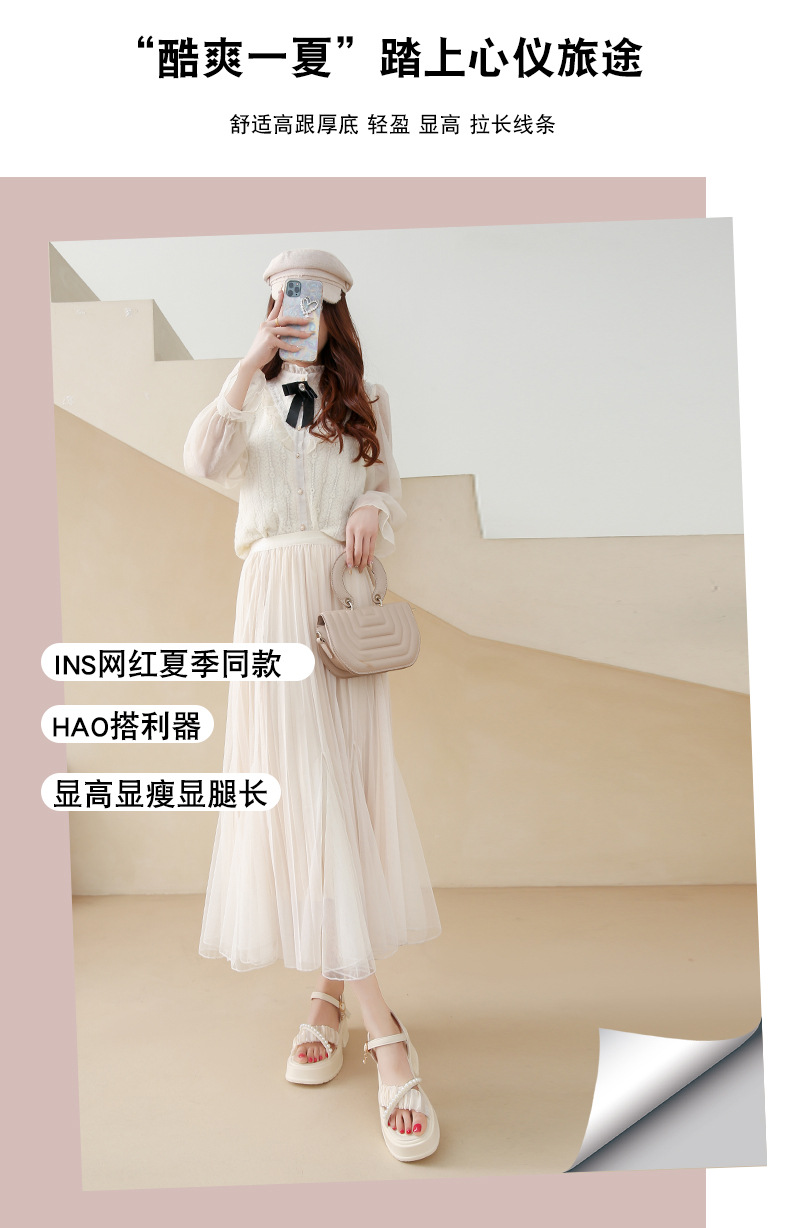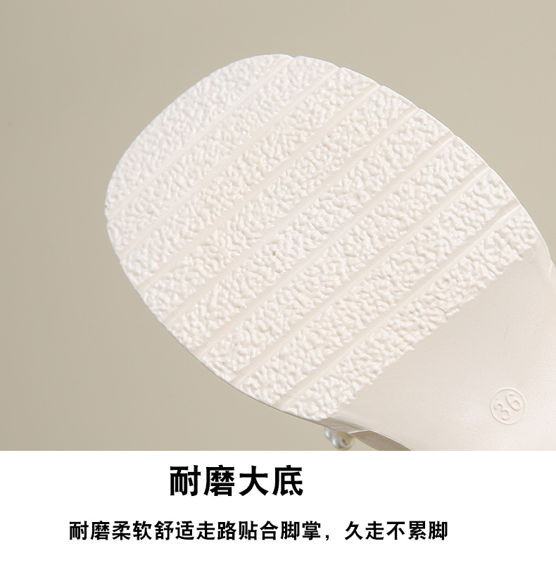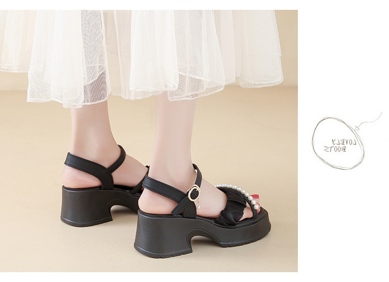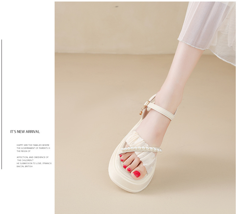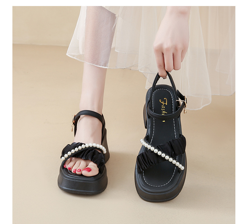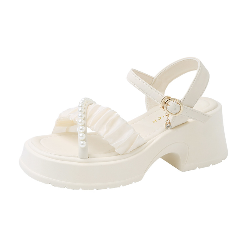 하이힐 샌들 여자 2025 년 새로운 여름 진주 액세서리 모든 경기 샤넬 스타일 여성 두꺼운 밑창 로마 샌들 스커트