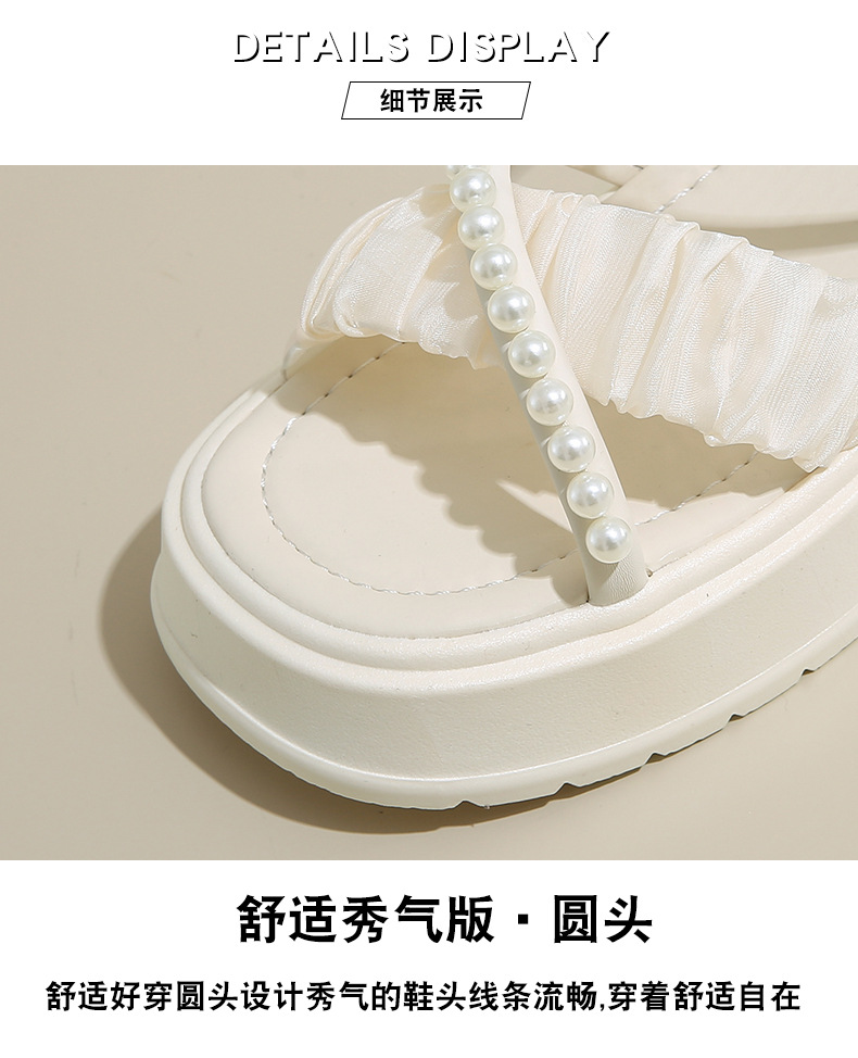 하이힐 샌들 여자 2025 년 새로운 여름 진주 액세서리 모든 경기 샤넬 스타일 여성 두꺼운 밑창 로마 샌들 스커트스토어 가기
