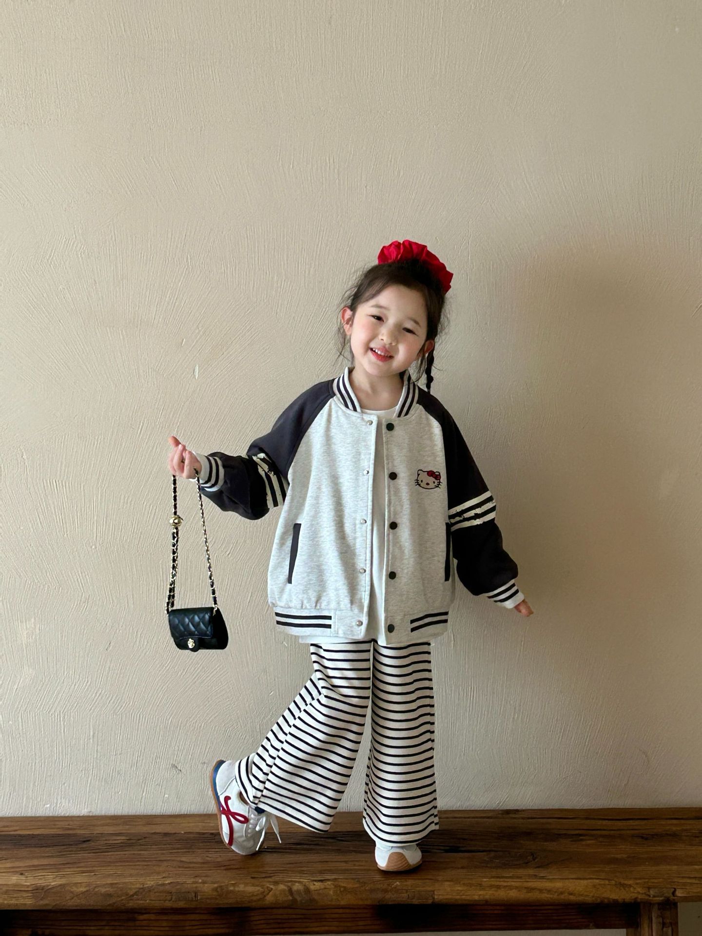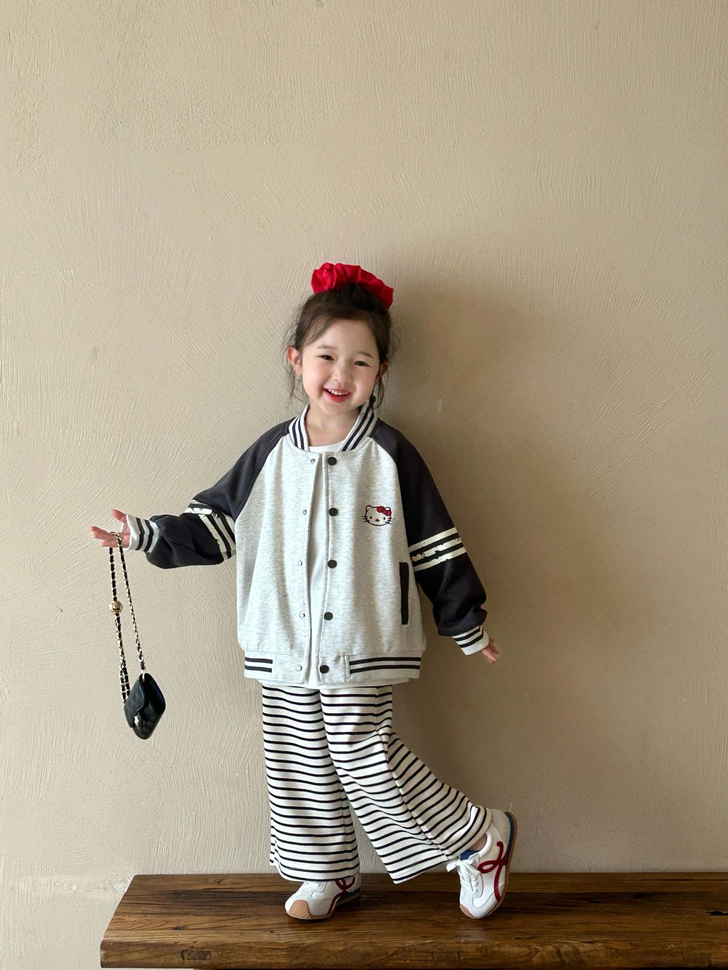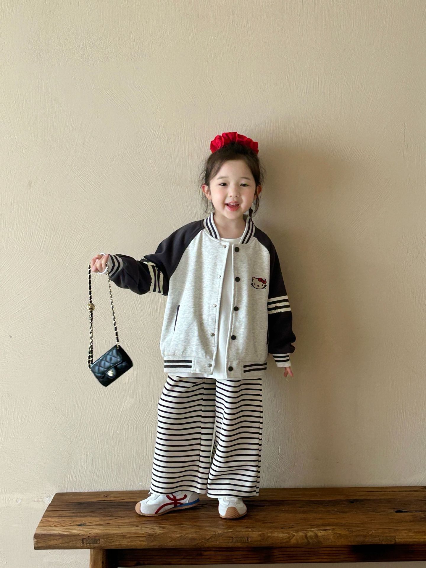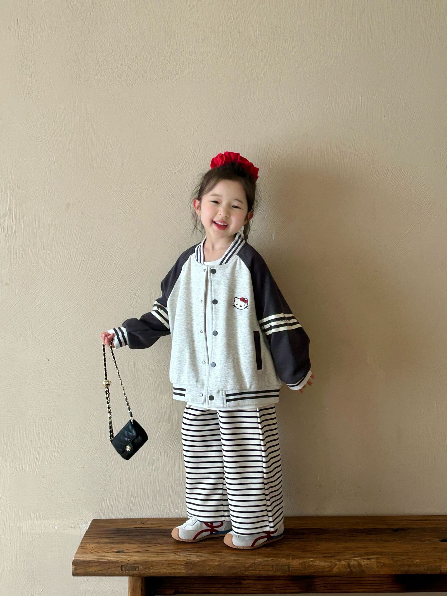 2025 봄 새 도착 한국 스타일 아동복 소녀 만화 패턴 야구 세트 아기 라글란 슬리브 코트