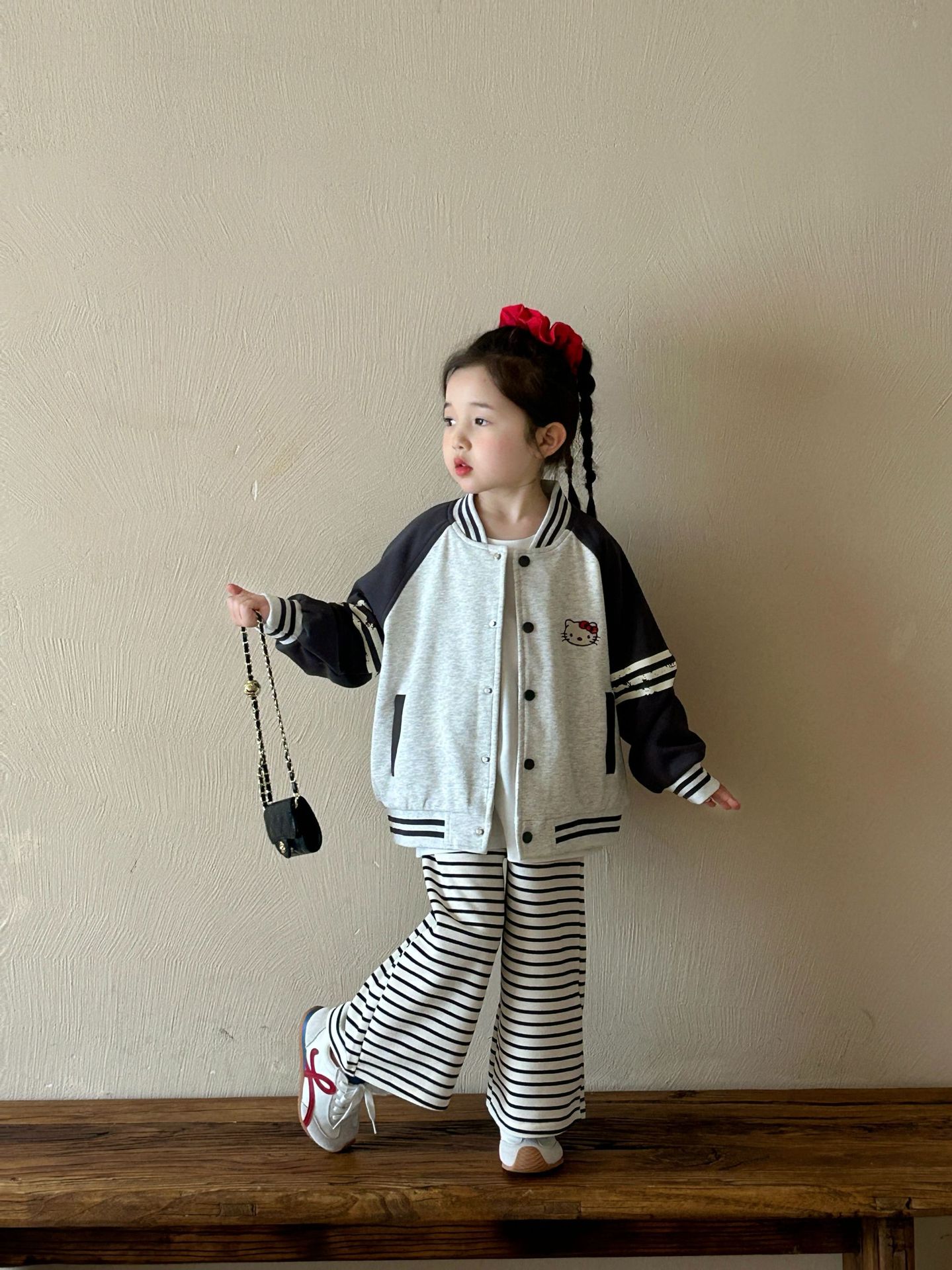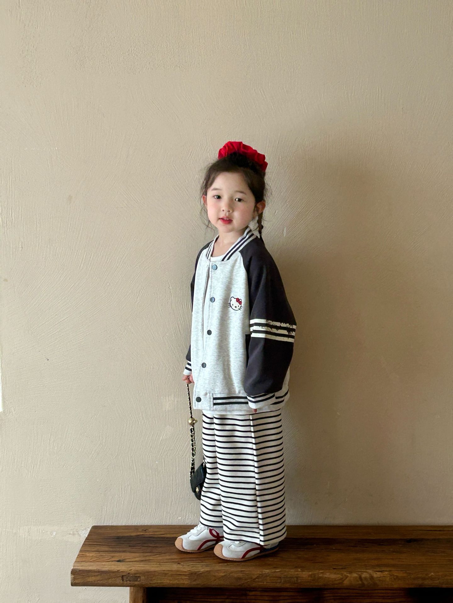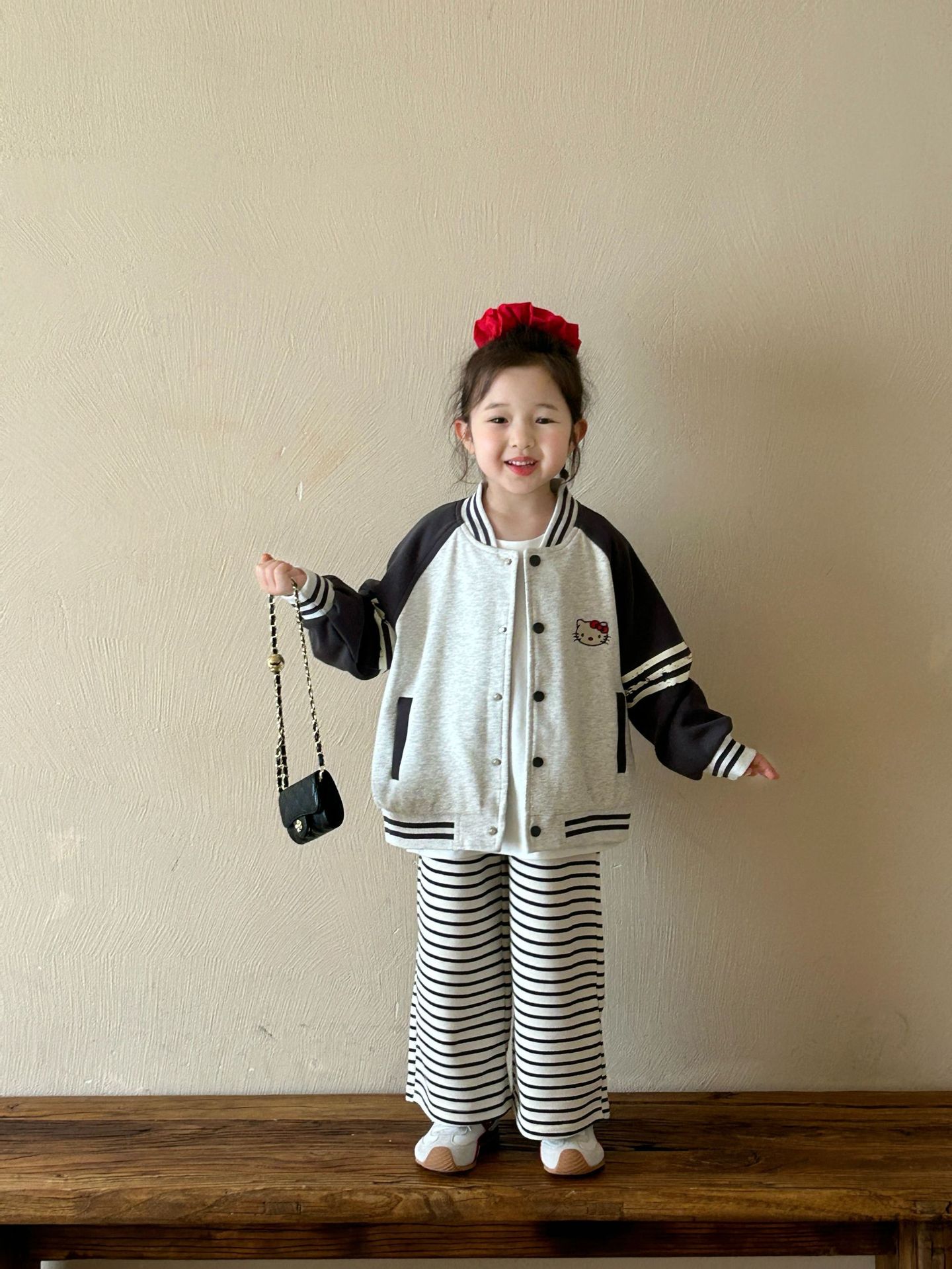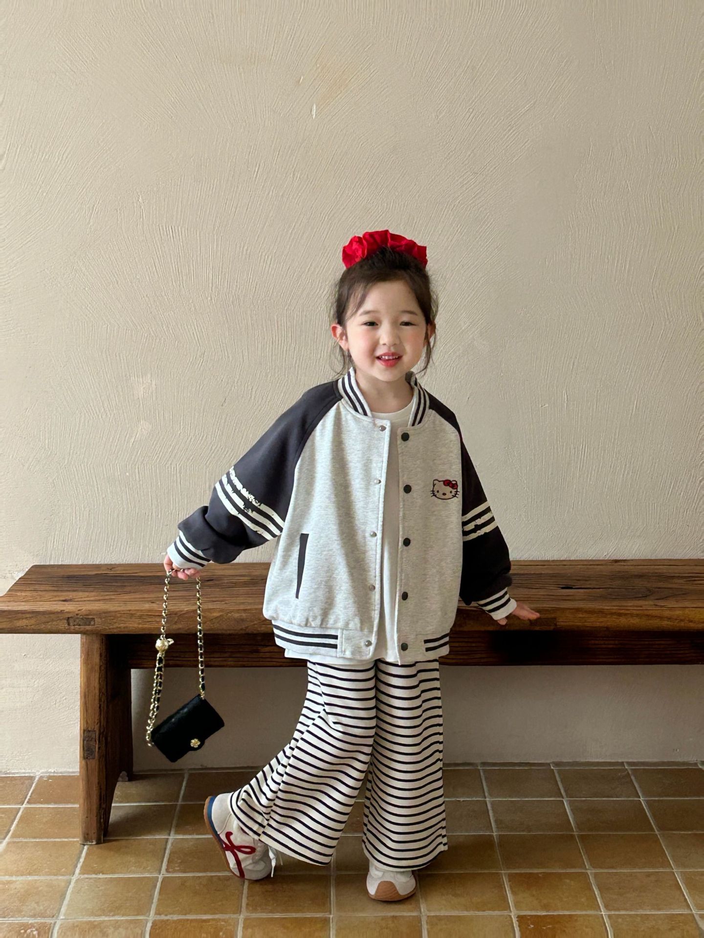 2025 봄 새 도착 한국 스타일 아동복 소녀 만화 패턴 야구 세트 아기 라글란 슬리브 코트