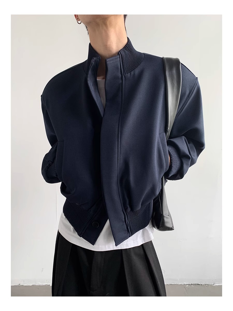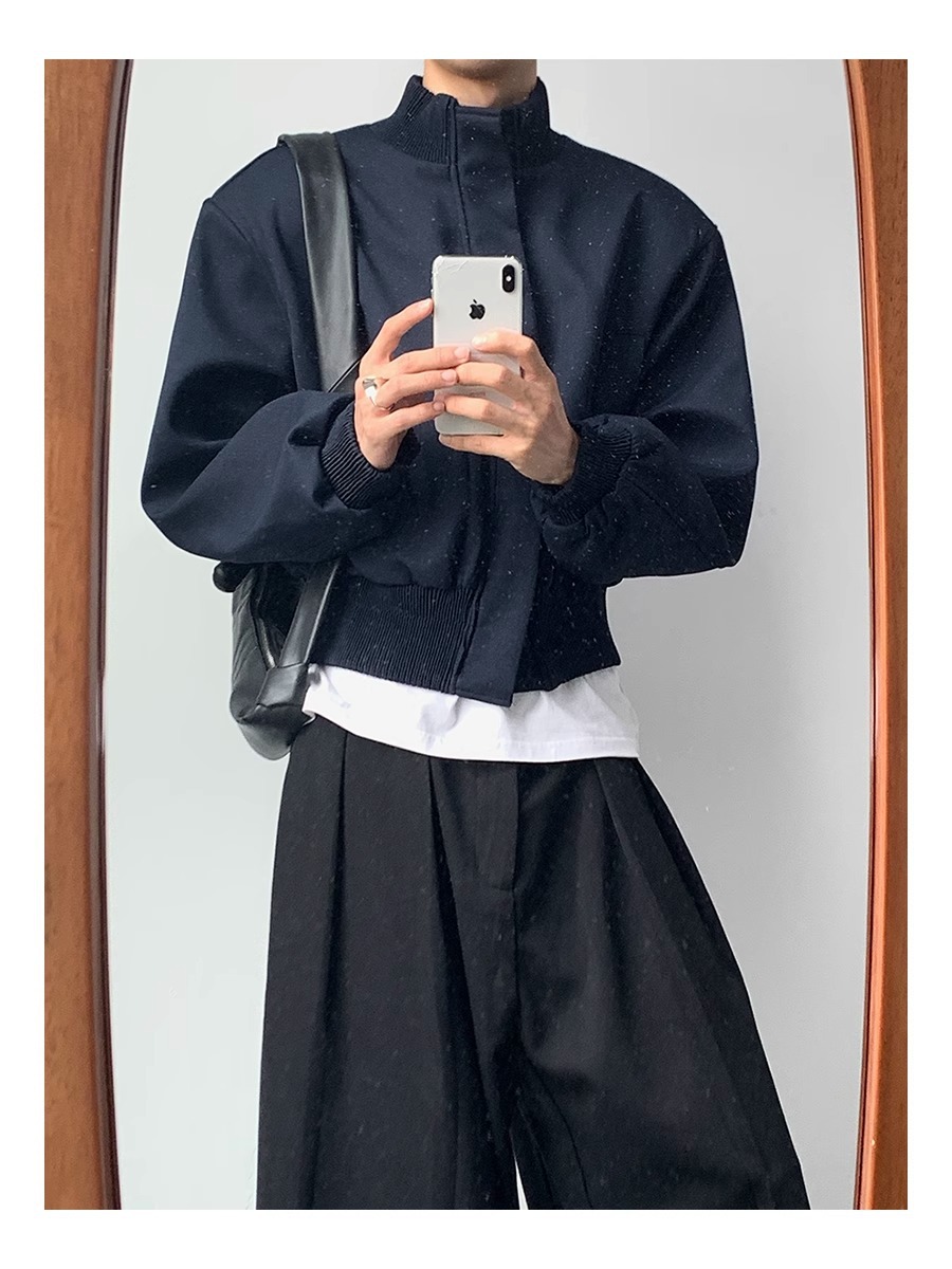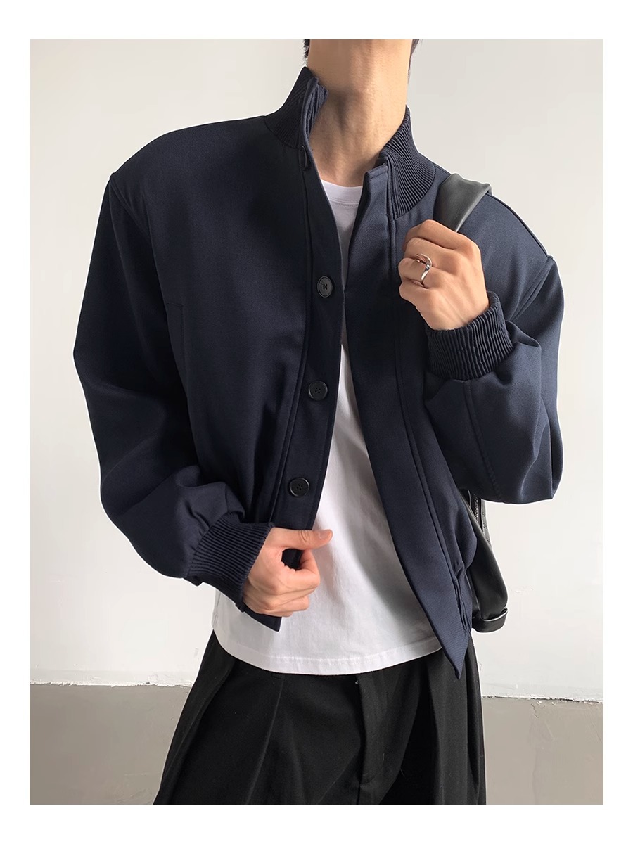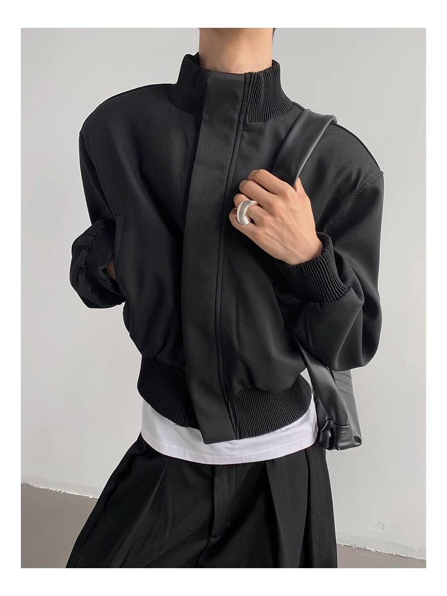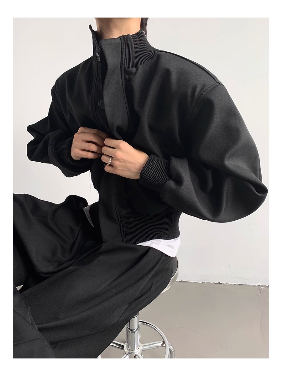 아메리칸 스타일 하이 스트리트 패션 브랜드 캐주얼 숄더 패드 재킷 남성 봄과 가을 새로운 느슨한 수직 칼라 디자인 센스 짧은 재킷 탑스토어 가기
