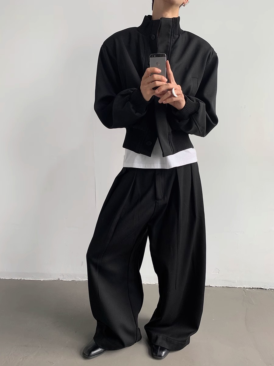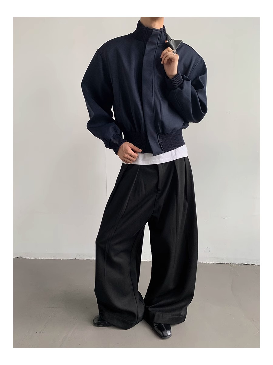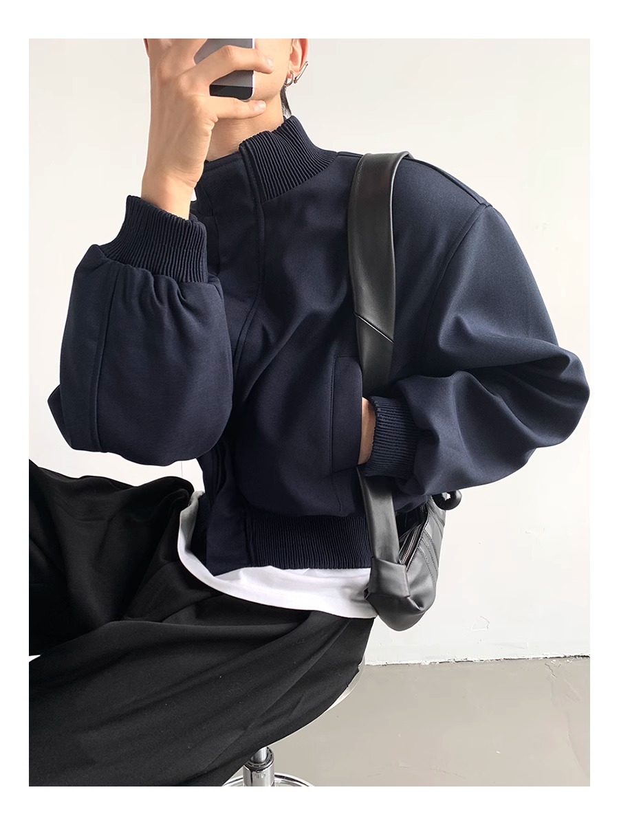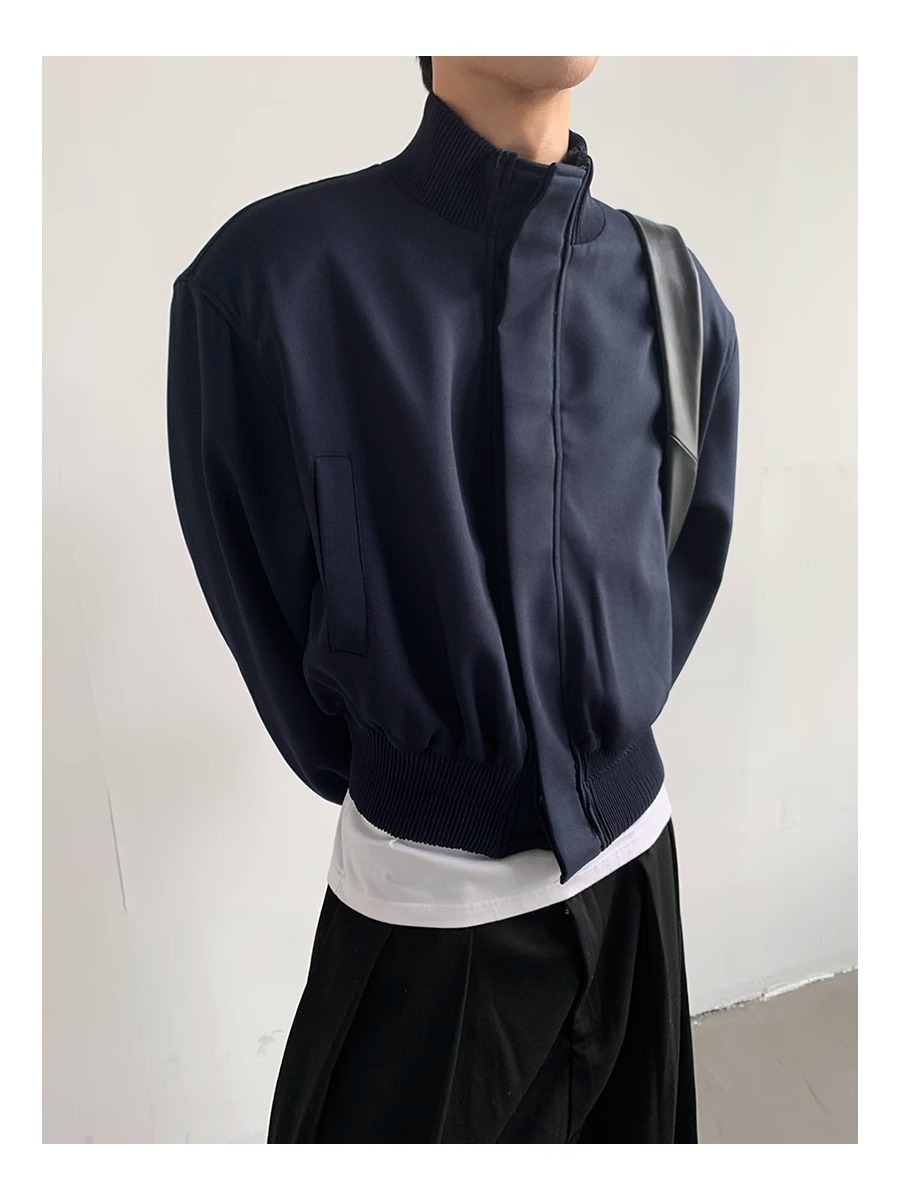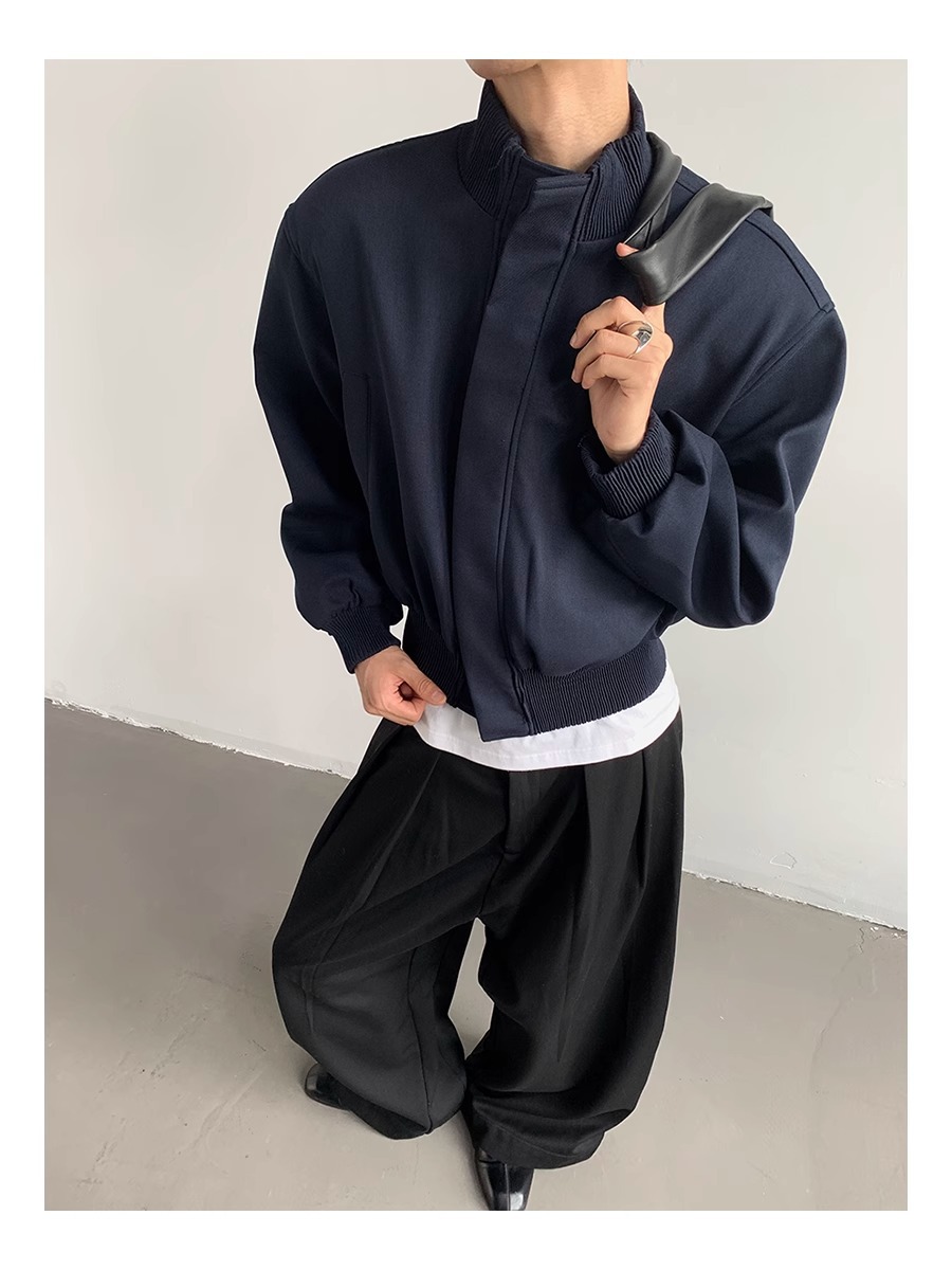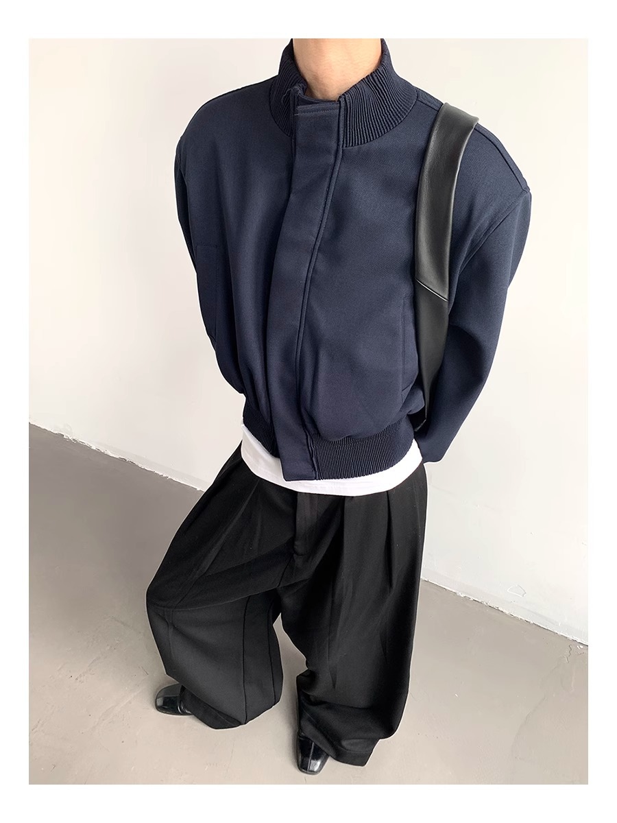 아메리칸 스타일 하이 스트리트 패션 브랜드 캐주얼 숄더 패드 재킷 남성 봄과 가을 새로운 느슨한 수직 칼라 디자인 센스 짧은 재킷 탑스토어 가기
