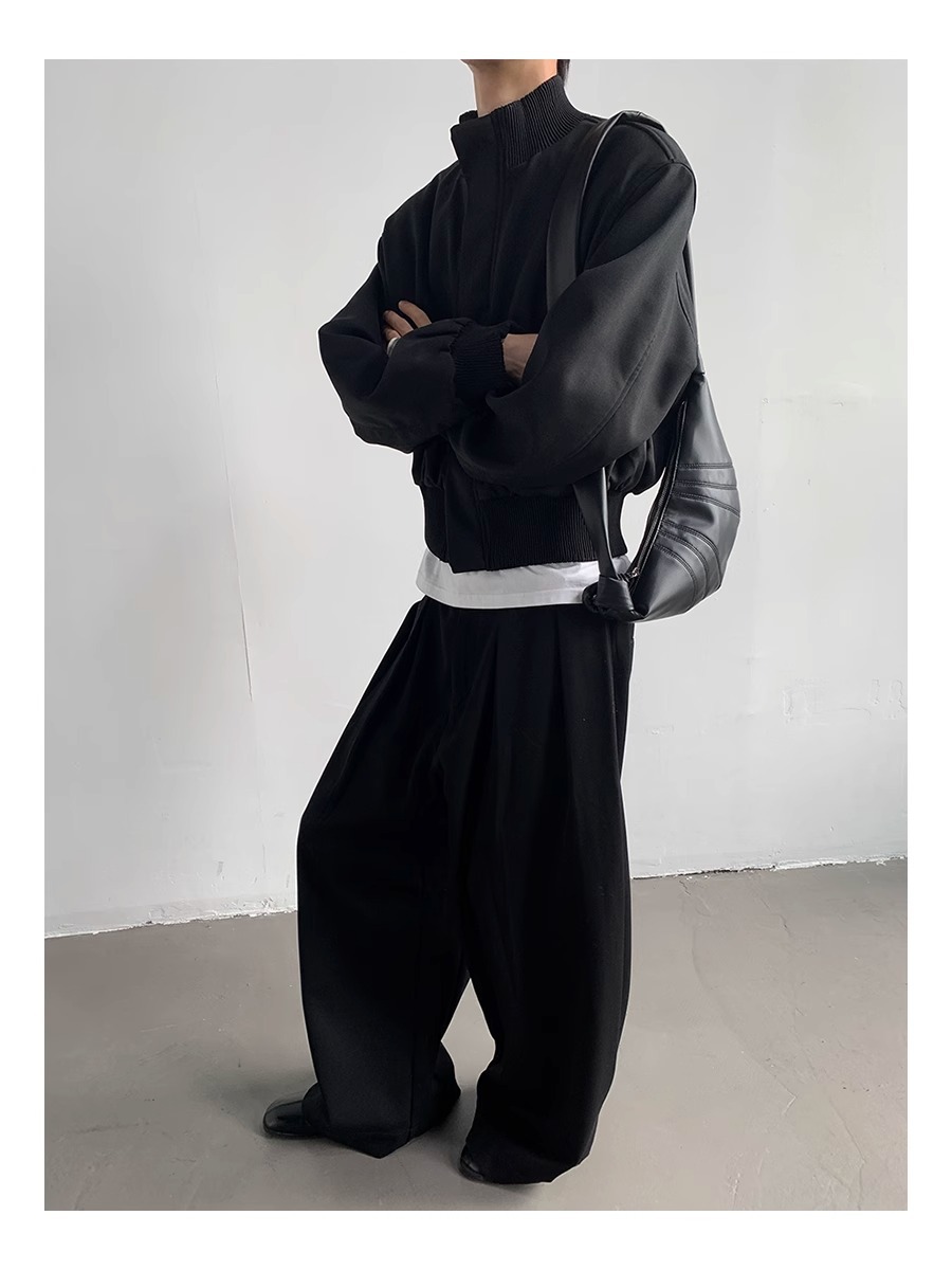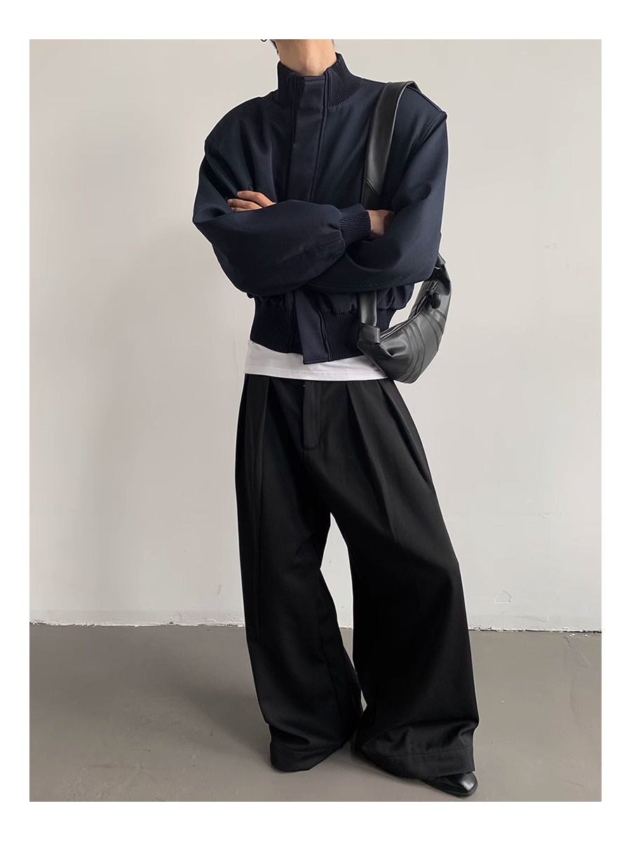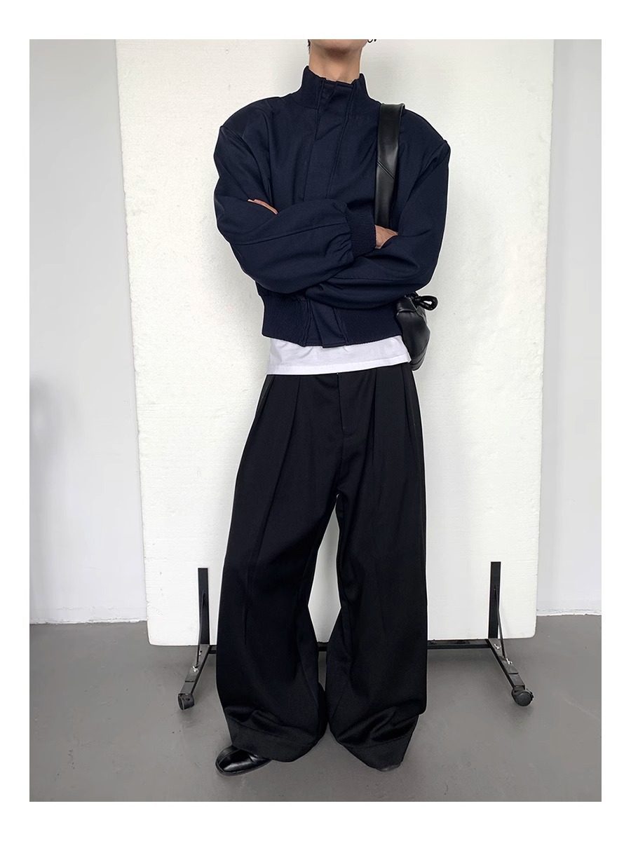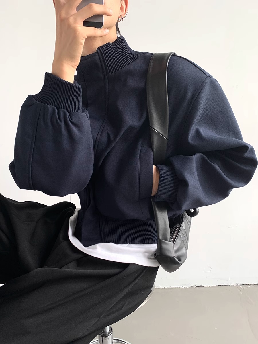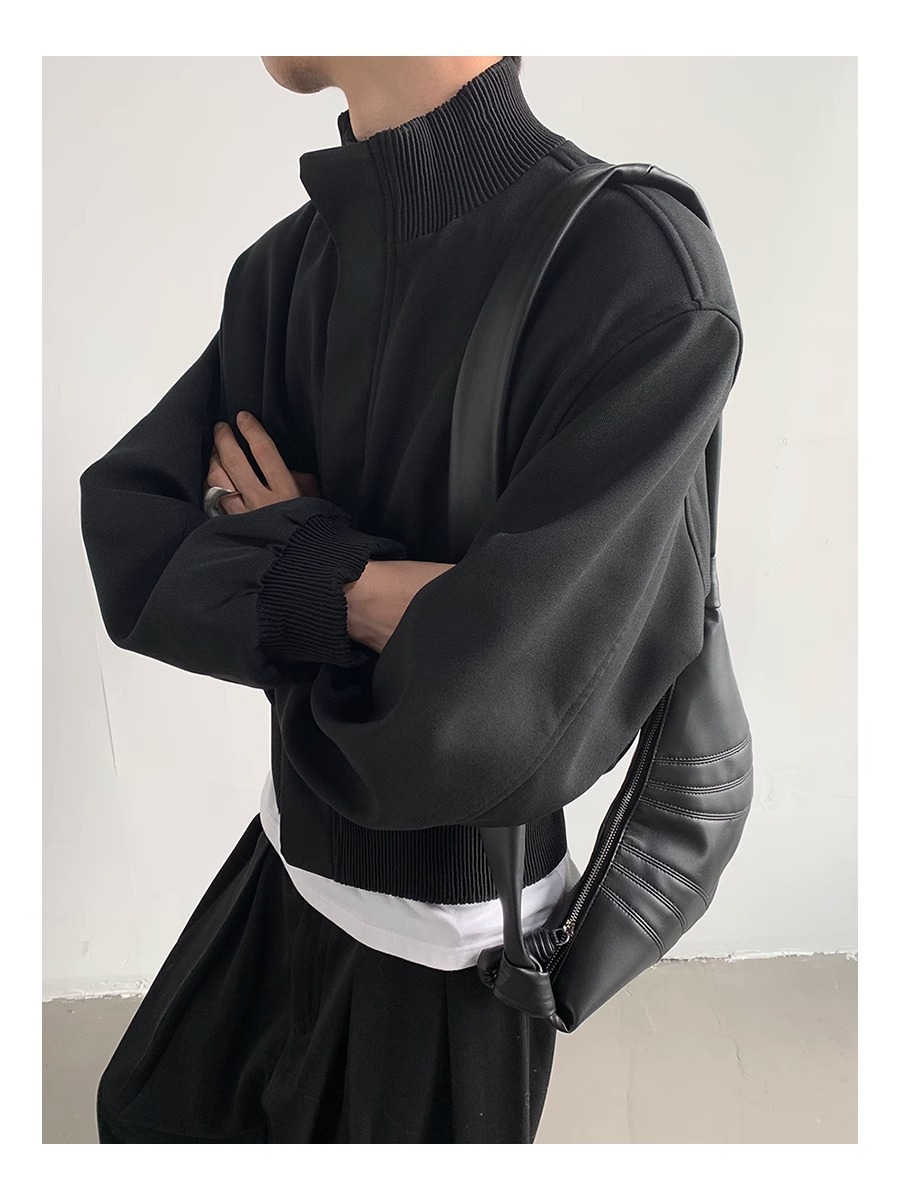 아메리칸 스타일 하이 스트리트 패션 브랜드 캐주얼 숄더 패드 재킷 남성 봄과 가을 새로운 느슨한 수직 칼라 디자인 센스 짧은 재킷 탑스토어 가기
