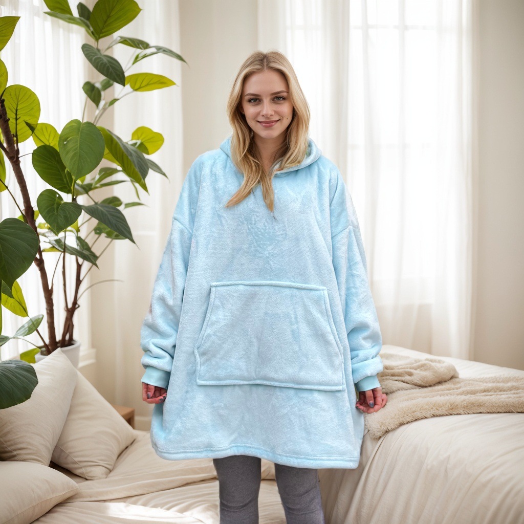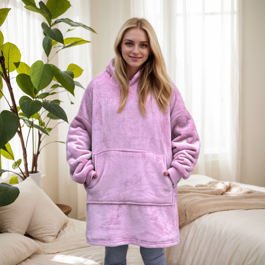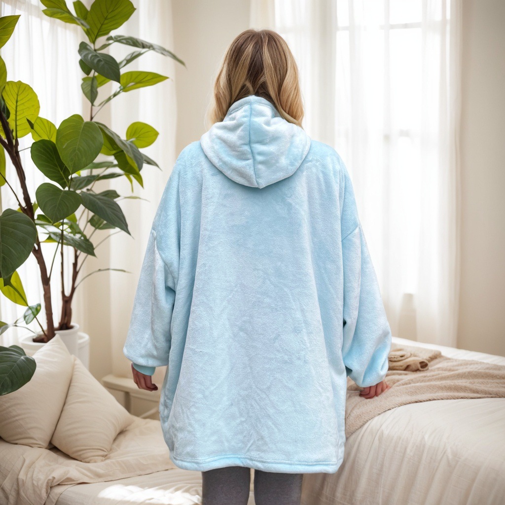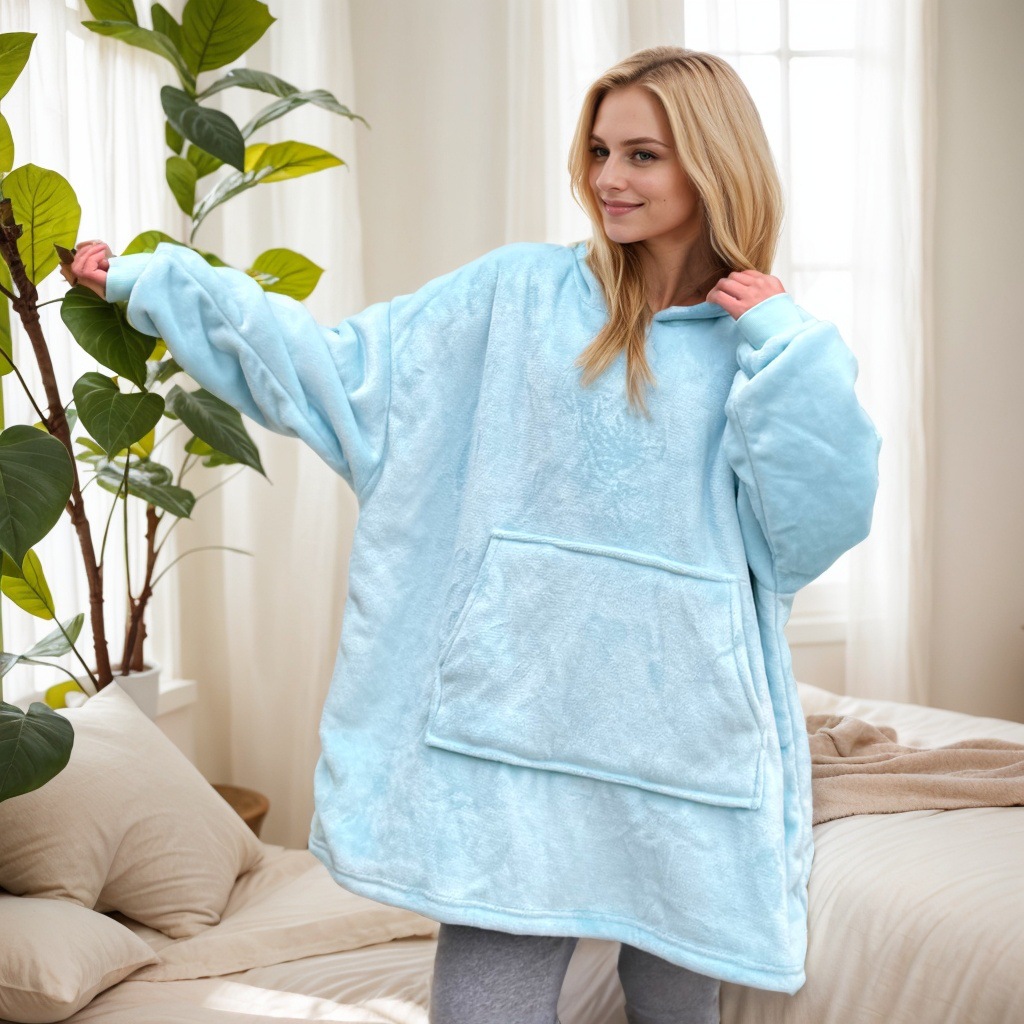 후드티형 두꺼운 레이지 블랭킷, 방한복, 후드가 달린 잠옷, 보온 의류, 기모 TV 담요, 집에서 따뜻하고 편안하며 통기성이 좋은 제품스토어 가기