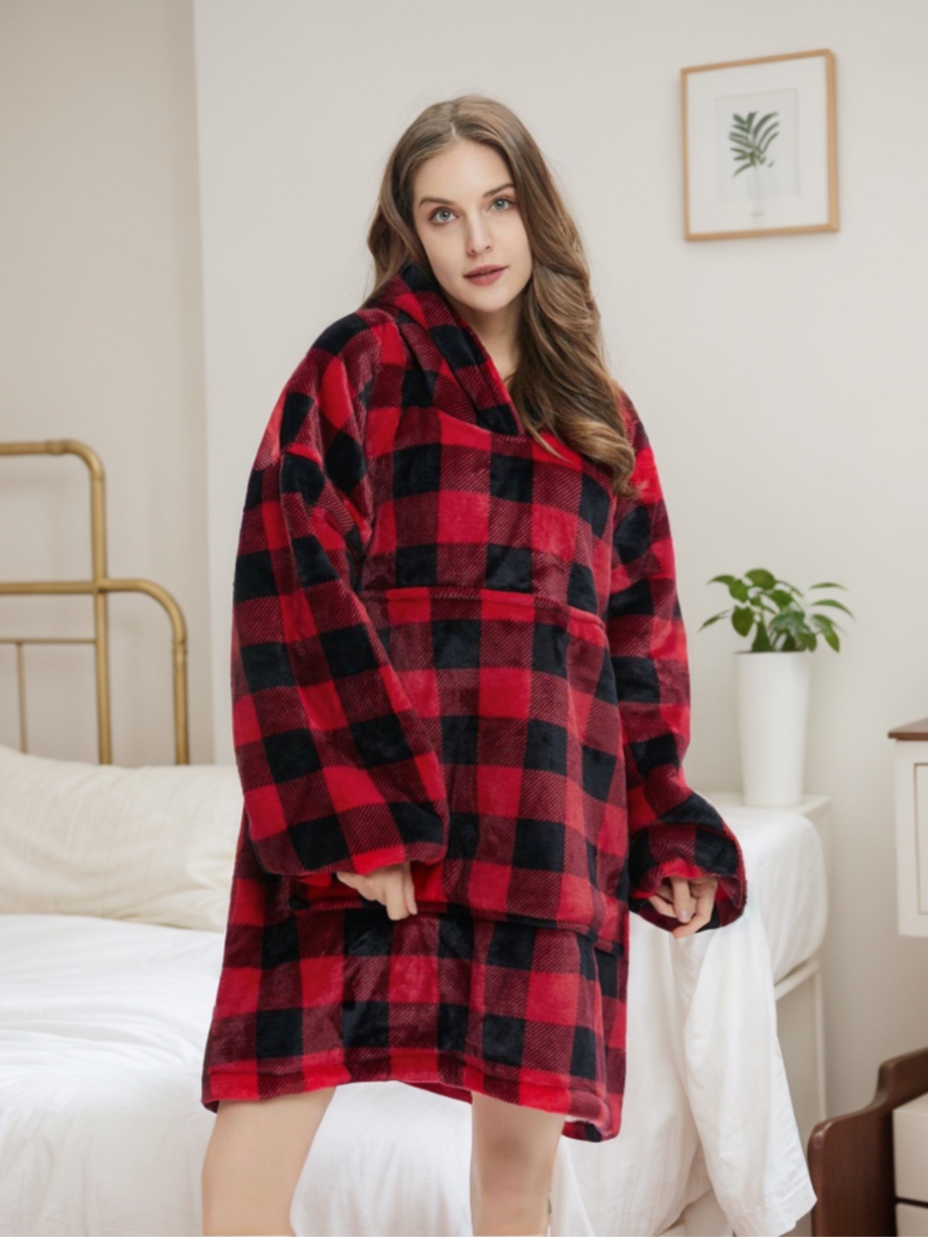후드티형 두꺼운 레이지 블랭킷, 방한복, 후드가 달린 잠옷, 보온 의류, 기모 TV 담요, 집에서 따뜻하고 편안하며 통기성이 좋은 제품