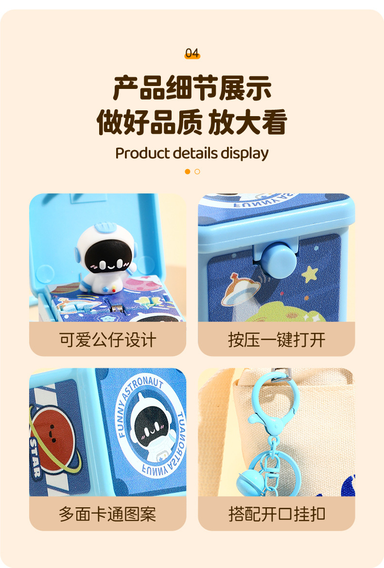만화 우주 비행사 원 버튼 팝업 깜짝 상자 키 체인 펜던트 치료 감압 어린이 장난감 선물 도매스토어 가기