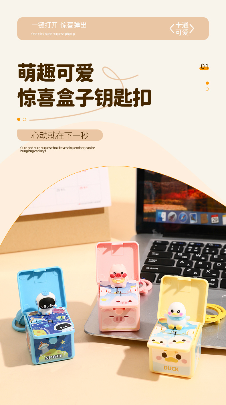 만화 우주 비행사 원 버튼 팝업 깜짝 상자 키 체인 펜던트 치료 감압 어린이 장난감 선물 도매