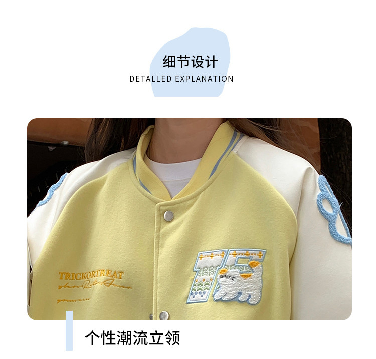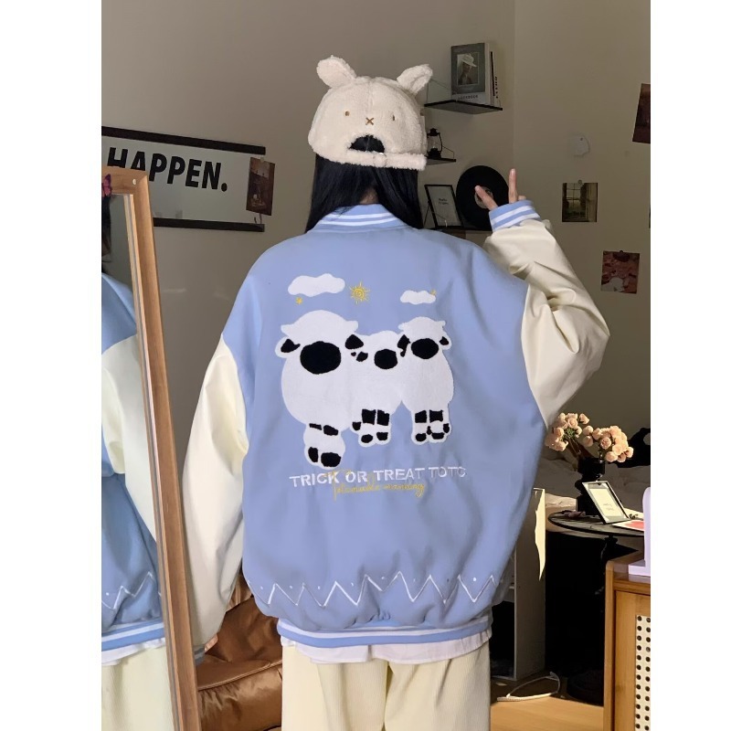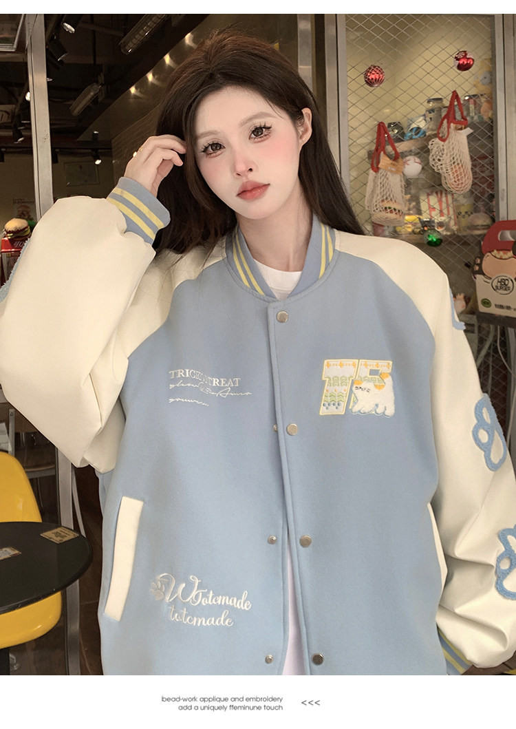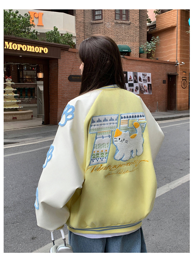 미국 컬러 자수 야구 세트 코트 여성의 봄과 가을 새로운 디자인 센스 틈새 커플 느슨한 재킷 코트 남자스토어 가기