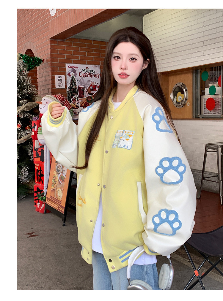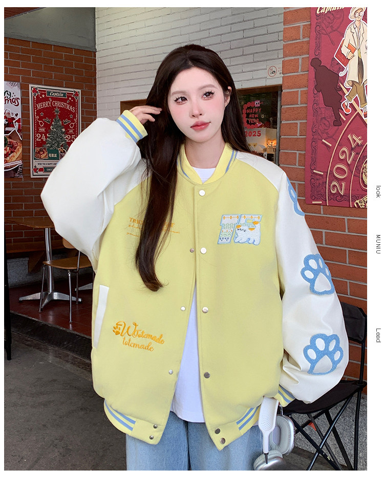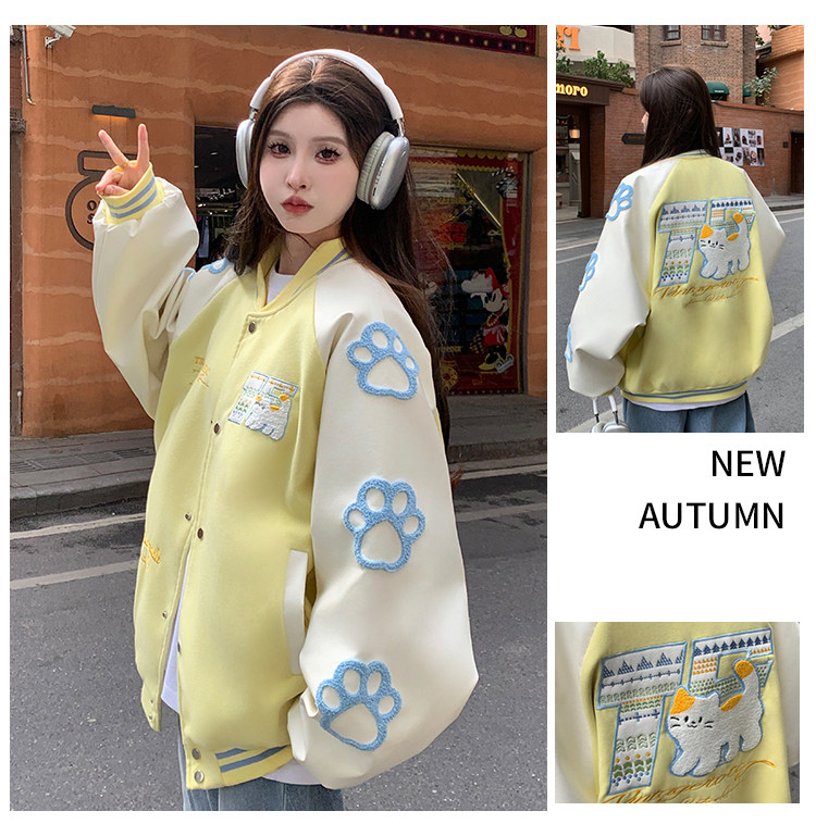 미국 컬러 자수 야구 세트 코트 여성의 봄과 가을 새로운 디자인 센스 틈새 커플 느슨한 재킷 코트 남자