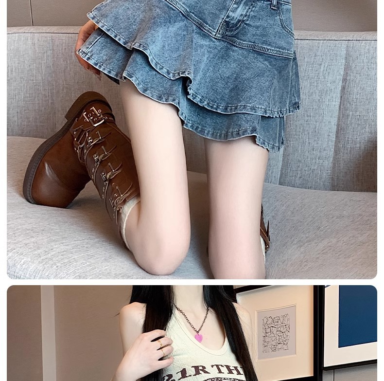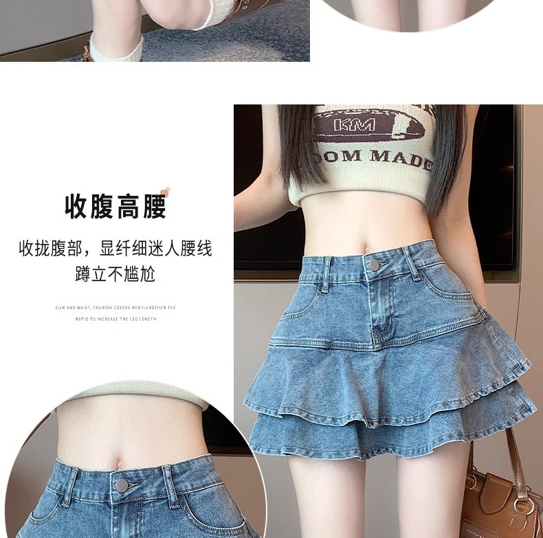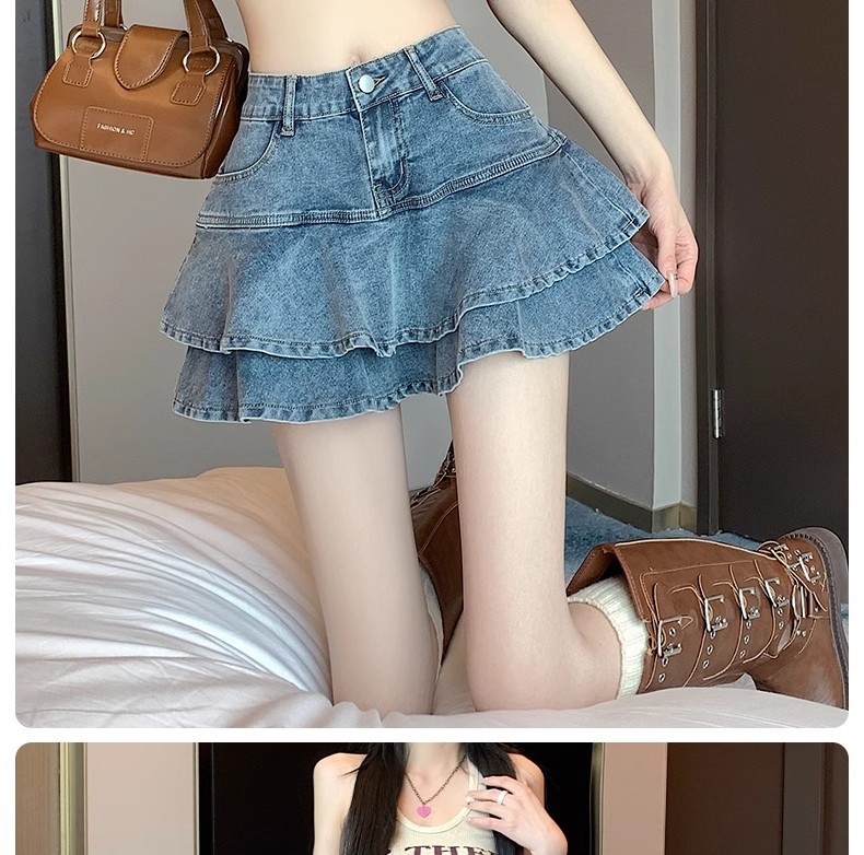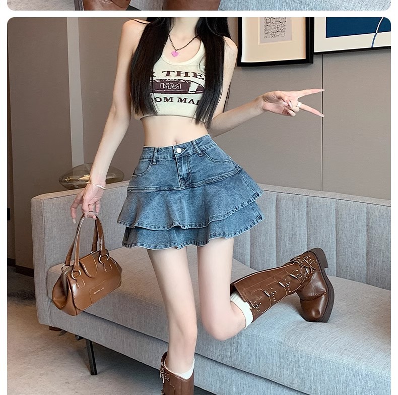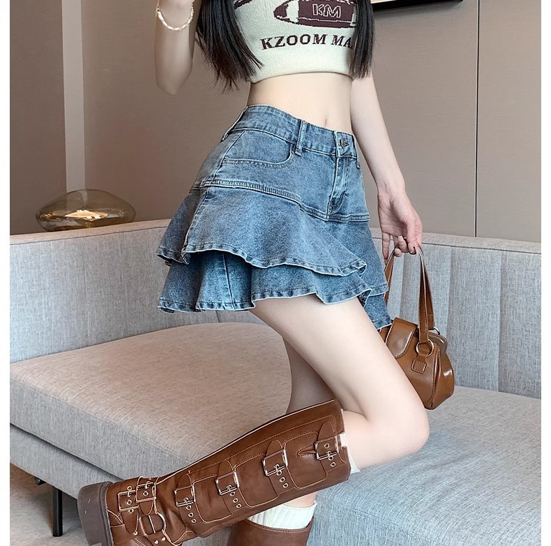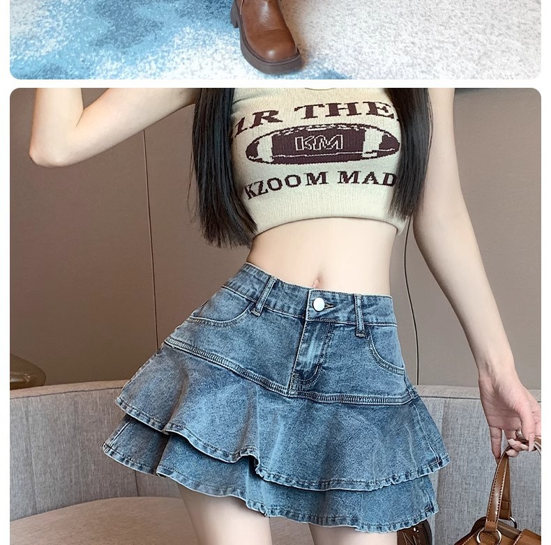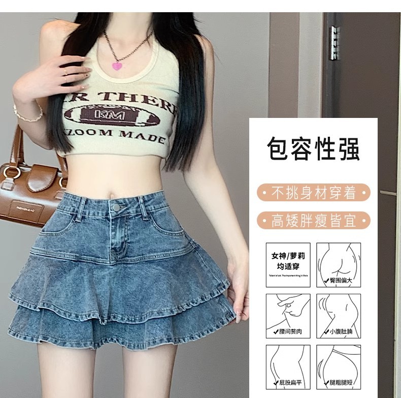 러플 데님 스커트 여성 여름 높은 허리 케이크 스커트 슬리밍 엉덩이 A 자형 스파이스 소녀의 짧은 피쉬 테일 스커트스토어 가기
