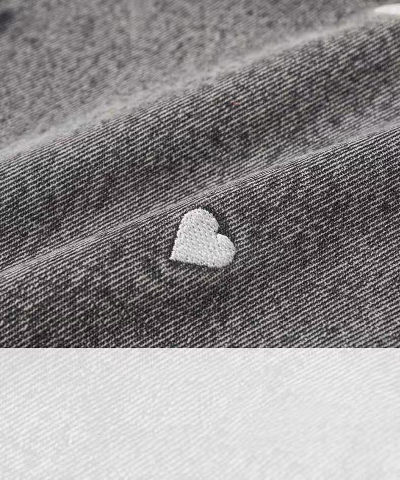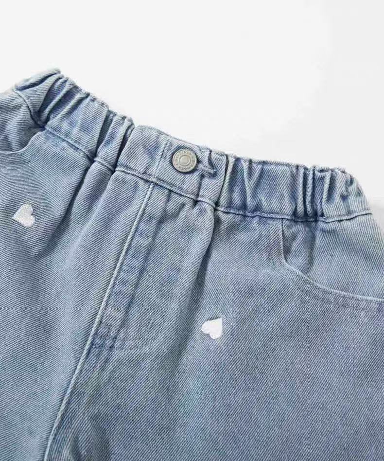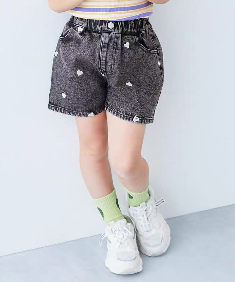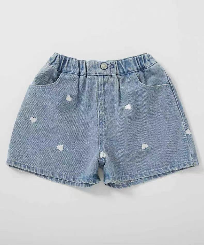 2025 여름 맑은 간단한 소녀의 바지 자수 느슨한 복숭아 심장 데님 반바지