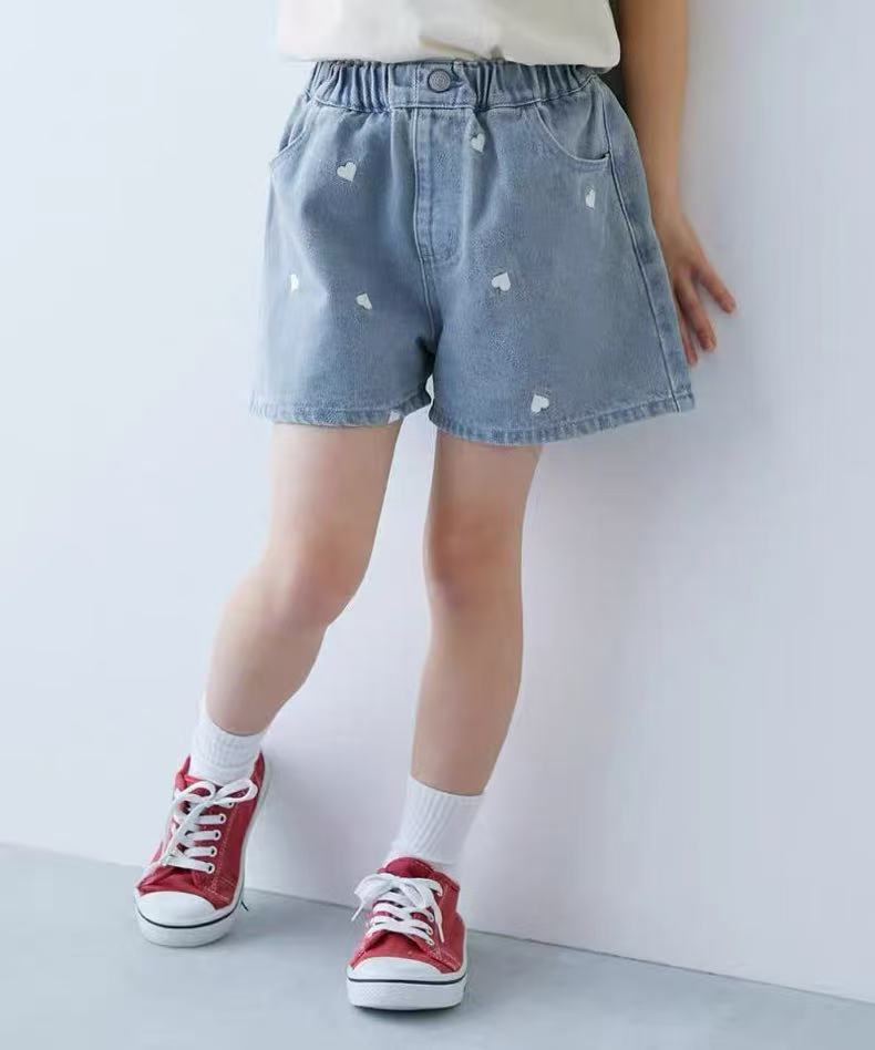 2025 여름 맑은 간단한 소녀의 바지 자수 느슨한 복숭아 심장 데님 반바지스토어 가기