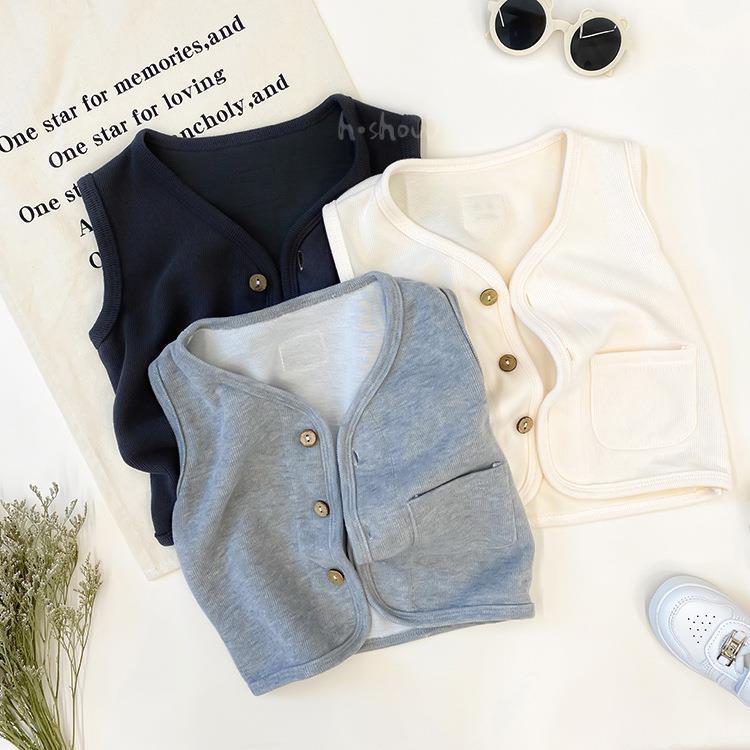 한국식 어린이 조끼 니트 조끼 신설 봄 · 가을 조끼 소년 · 여학생용 솔리드 컬러 자켓 올매치 유치원