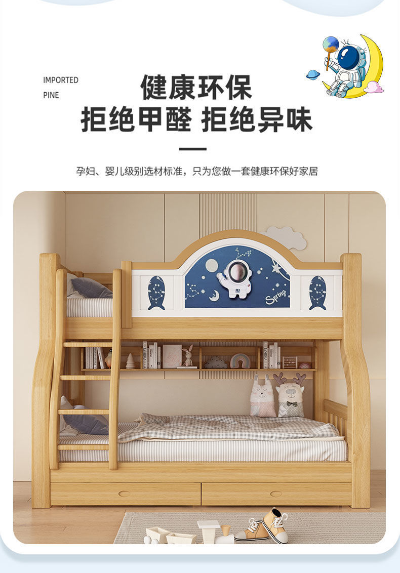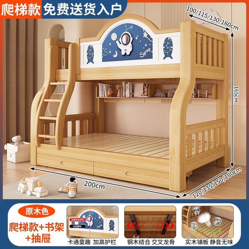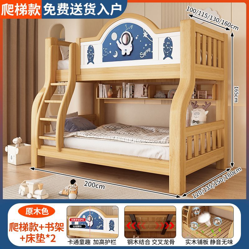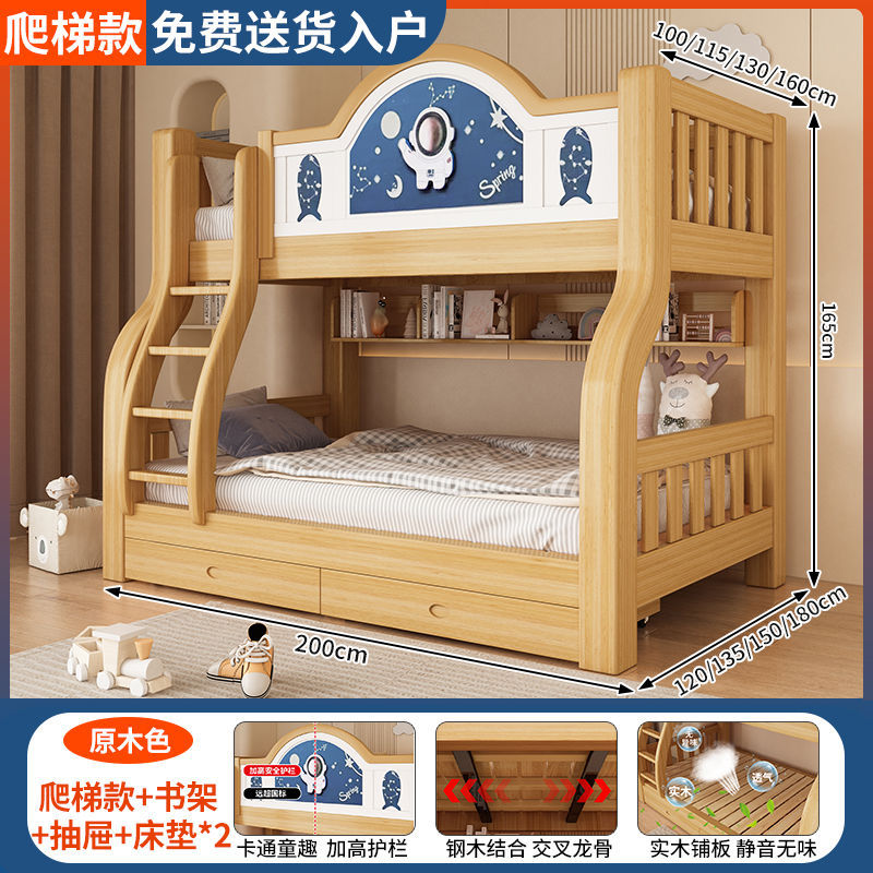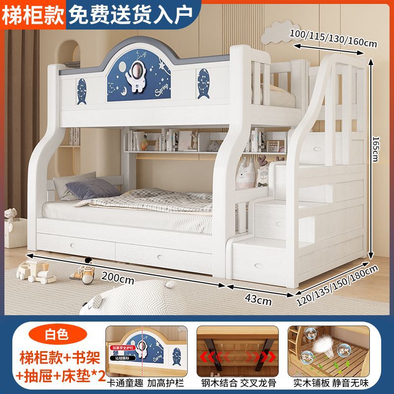 풀 솔리드 우드 벙크 침대 이층 침대 2 층 벙크 침대 다기능 어린이 침대 성인 하이 로우 침대 엄마와 아이 더블 침대