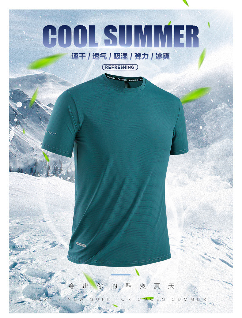 도매 반팔 티셔츠 남성 여름 얼음 실크 빠른 건조 통기성 탄성 스포츠 피트니스 티셔츠 러닝 캐주얼 대형