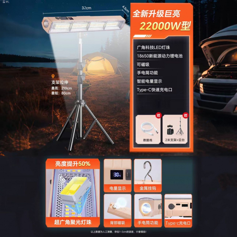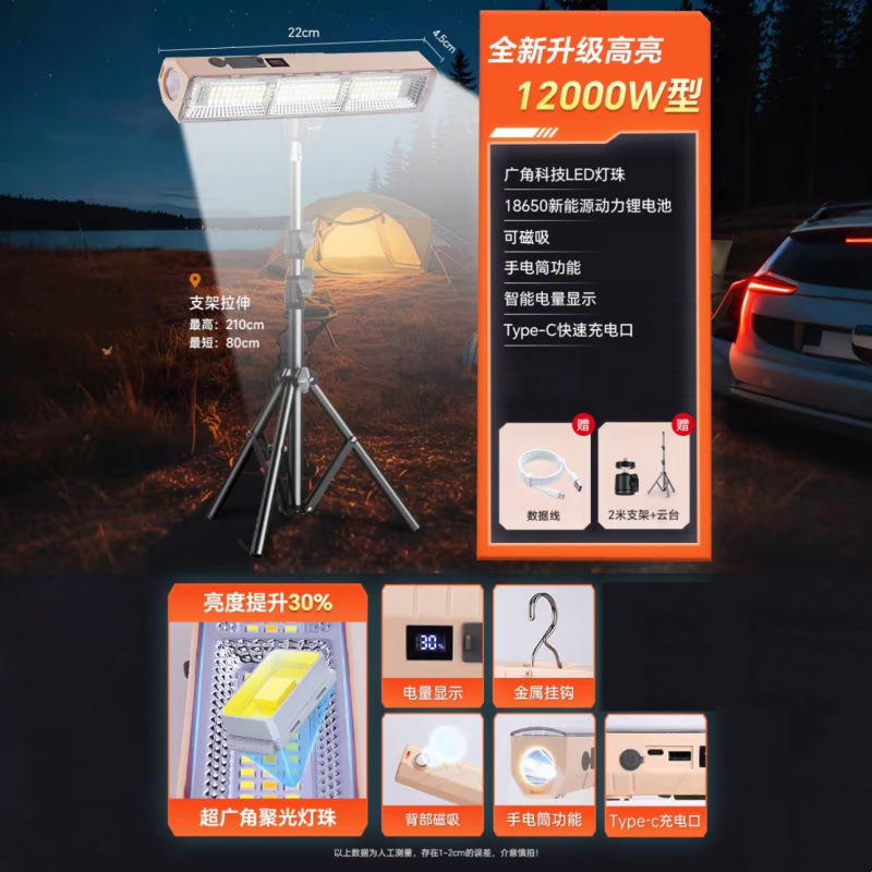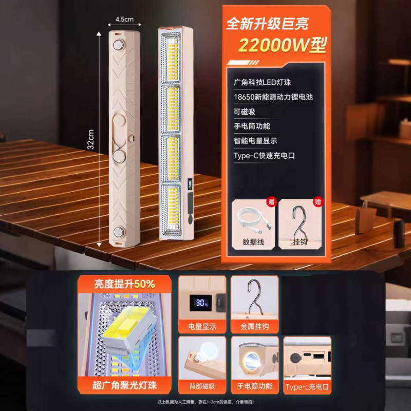 충전식 조명 야외 슈퍼 밝은 Led 대용량 매달려 라이트 나이트 마켓 스톨 휴대용 슈퍼 긴 내구성 캠핑 라이트