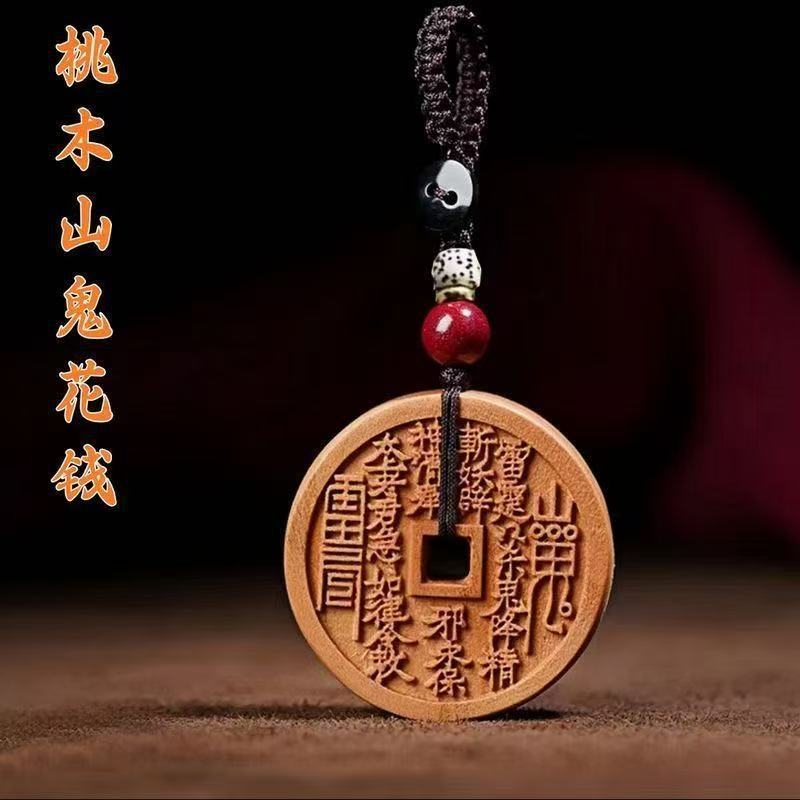Shangui 지출 돈 남녀 펜던트 키 체인 골동품 구리 머니 안전 버클 복숭아 나무 Shangui 지출 돈 도매 이우 상품