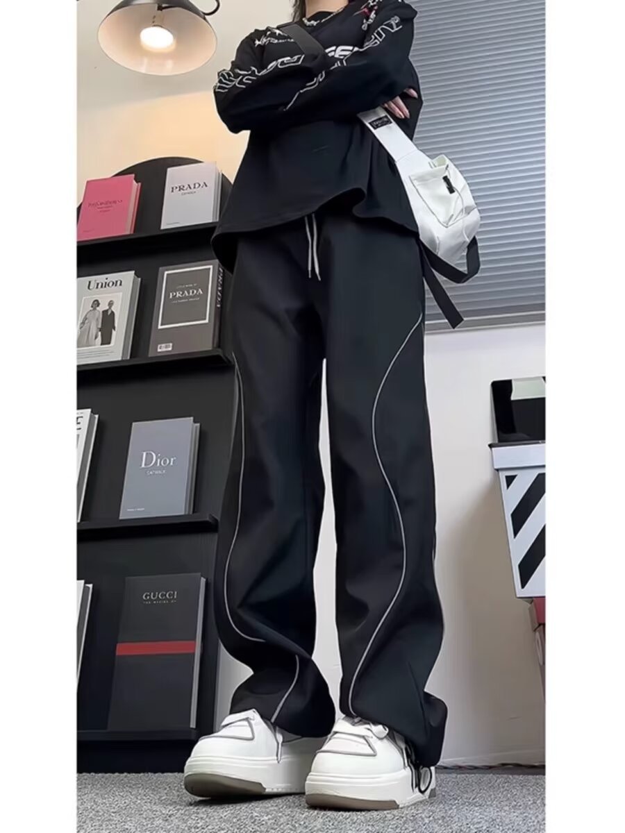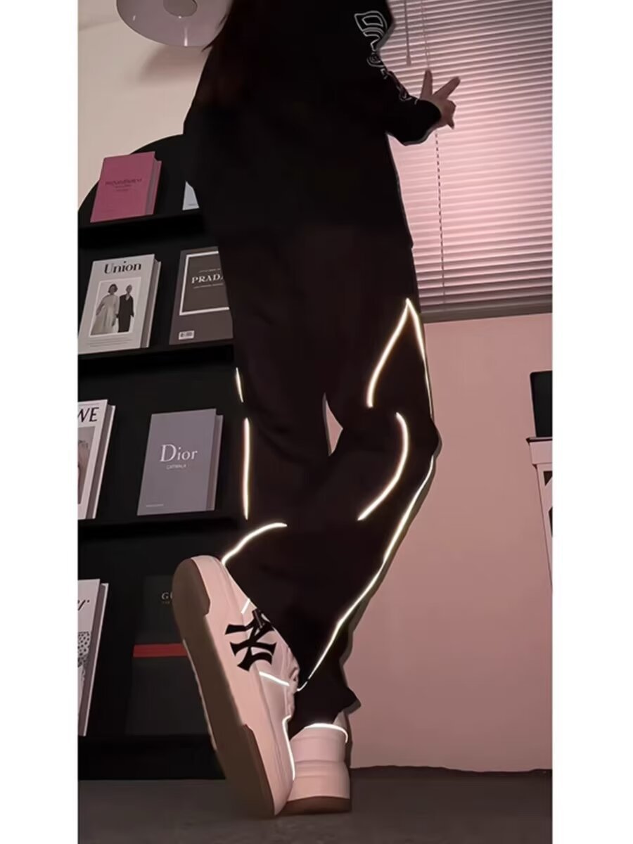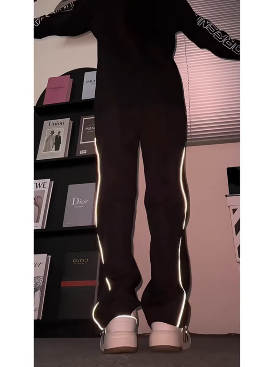 미국식 하이 스트리트 반사 스트립 러시 바지 남자 여름 아이스 실크 얇은 야외 등산 바지 힙합 디자인 센스 스트레이트 바지스토어 가기