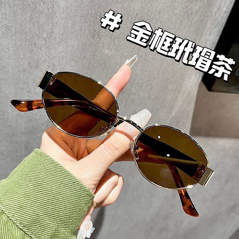 2024 새로운 개선문 타원형 금속 작은 프레임 선글라스 패션 선글라스 여성의 높은 감각 양산 오목한 모양