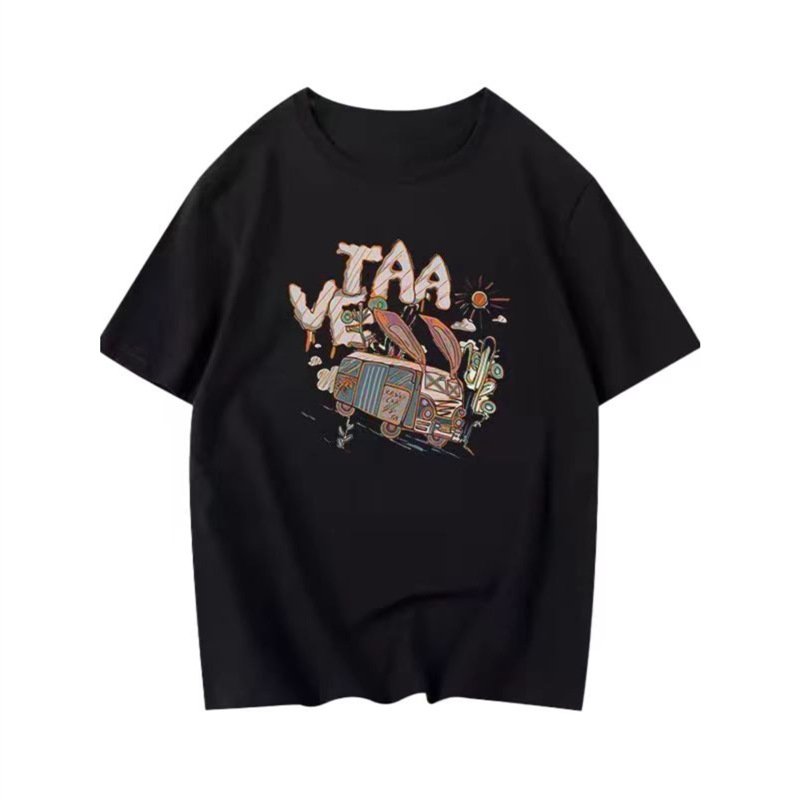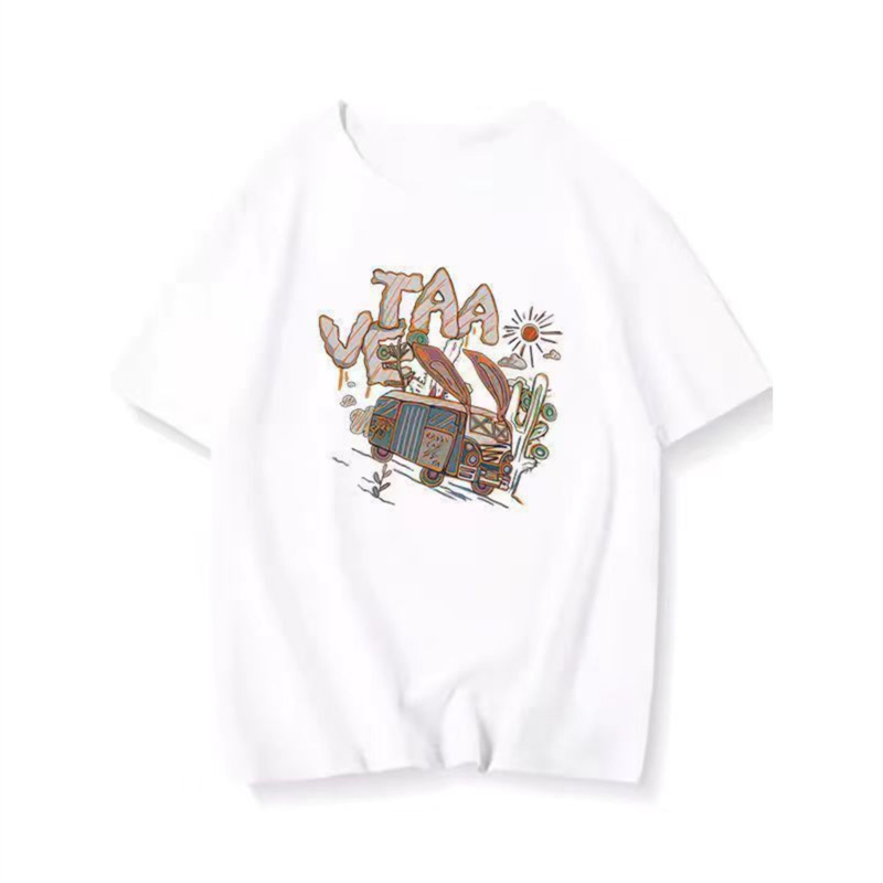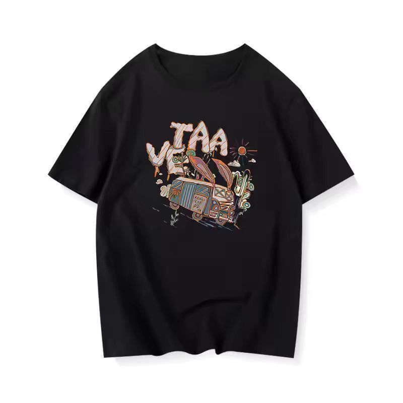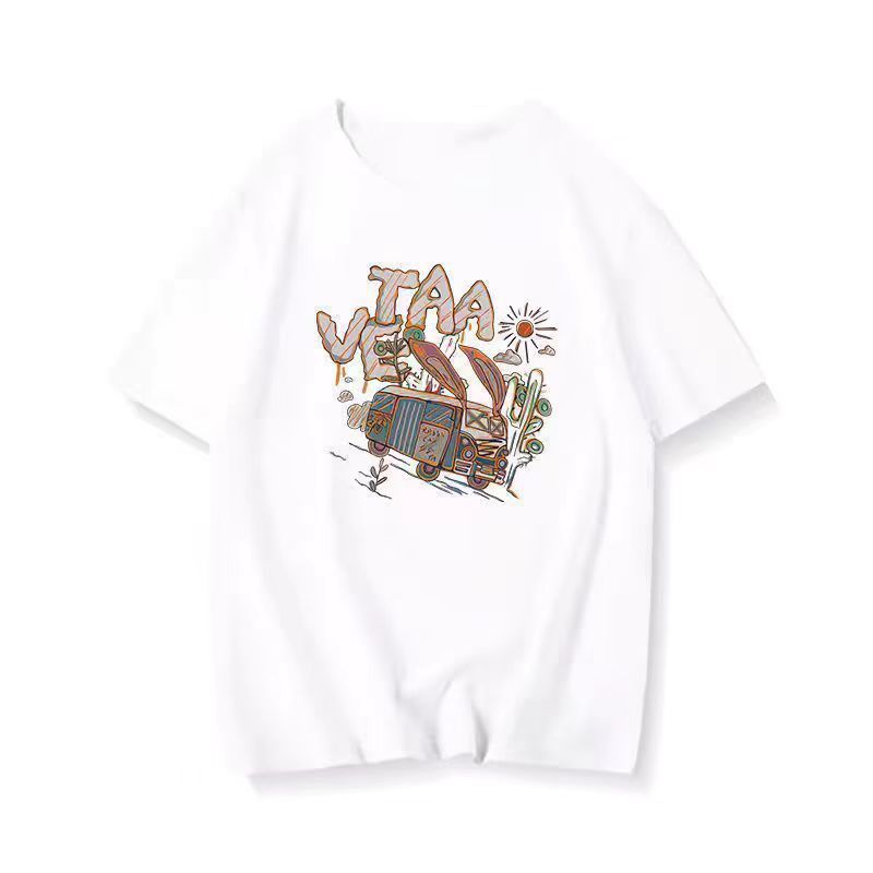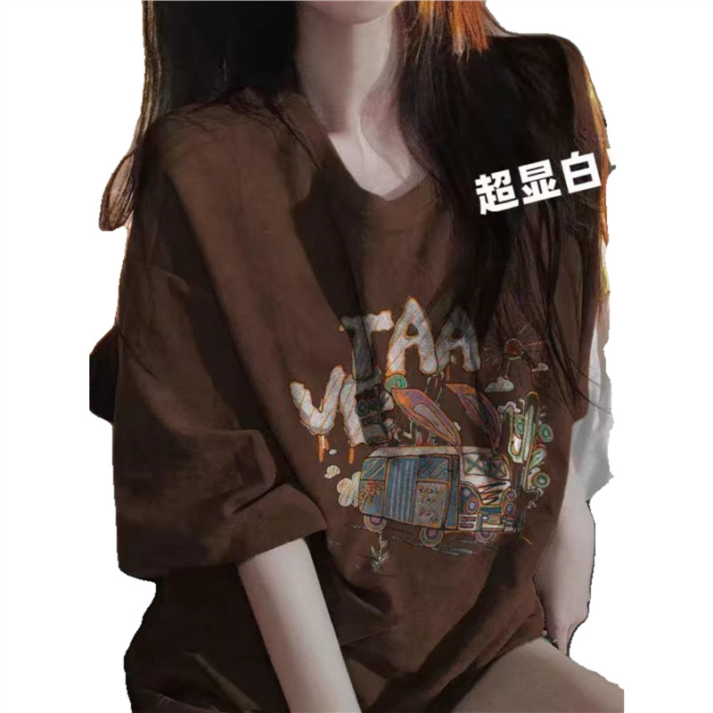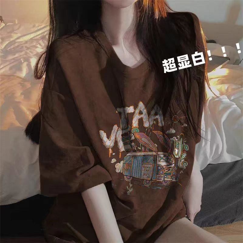 다크 브라운 코튼 아메리칸 스타일 느슨한 오버 사이즈 반팔 티셔츠 화이트 여성 여름 새 커플의 반소매 탑 트렌디스토어 가기
