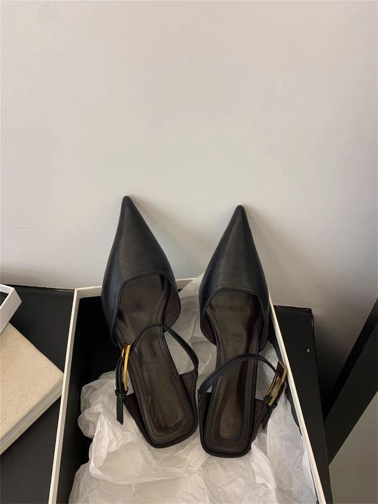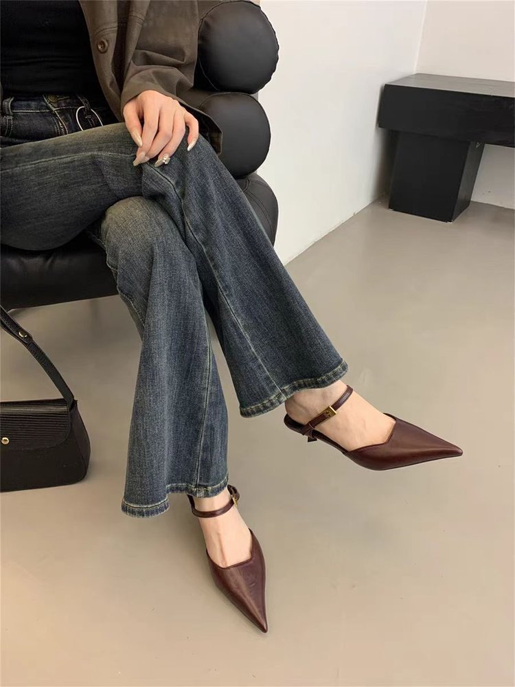 니치 프렌치 스타일 2025 여름 새로운 뾰족한 발가락 우아한 샌들 저발 다크 브라운 레트로 발가락 샌들 여성용 신발스토어 가기