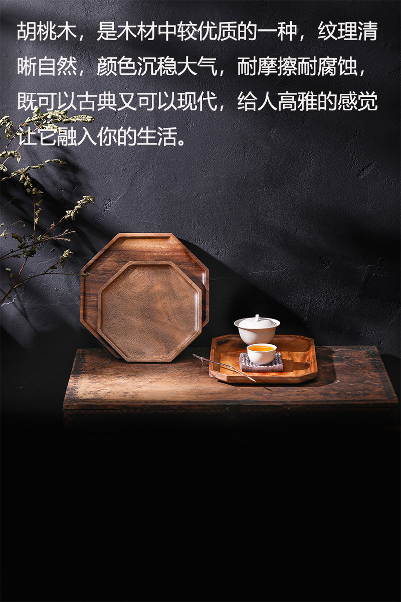 호두 가정용 플레이트 팔각형 단단한 나무 트레이 나무 상쾌한 플레이트 중국 스타일 dishpoint 플레이트스토어 가기