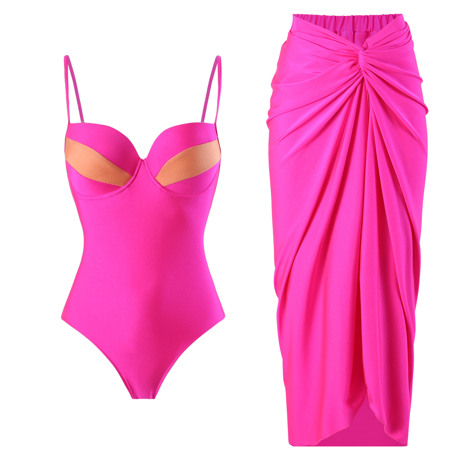 유럽과 미국의 프랑스 스타일 섹시한 수영복 여성 슬링 푸시 업 사이즈 가슴 슬림 핏 슬림 핏 보수적 인 비치 랩 원피스 세트